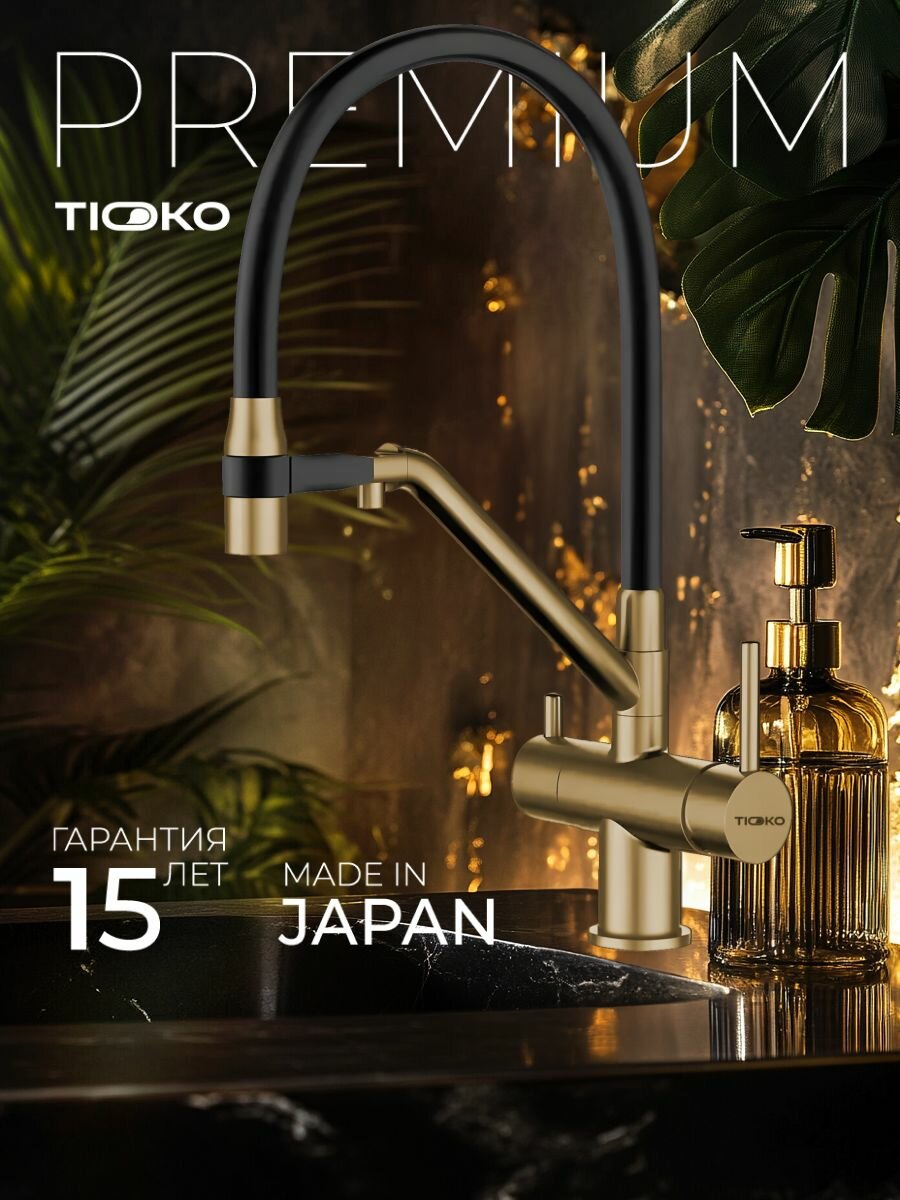Смеситель для кухни с гибким изливом и фильтром, латунь, TIOKO TI-0112GG 18 250 ₽