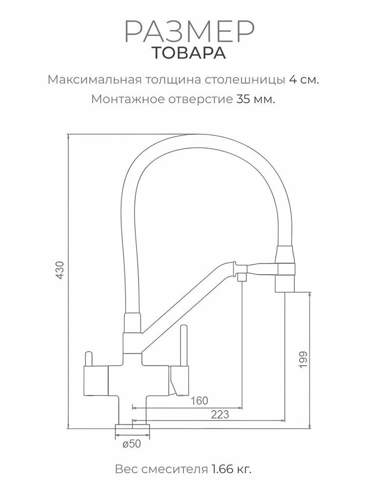 Смеситель для кухни с подключением к фильтру, TIOKO TI-0111B 13 728 ₽