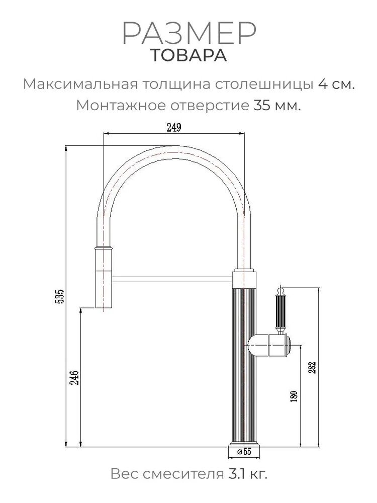 Смеситель для кухни с гибким изливом и аэратором, латунь, TIOKO TI-0113GG информация: