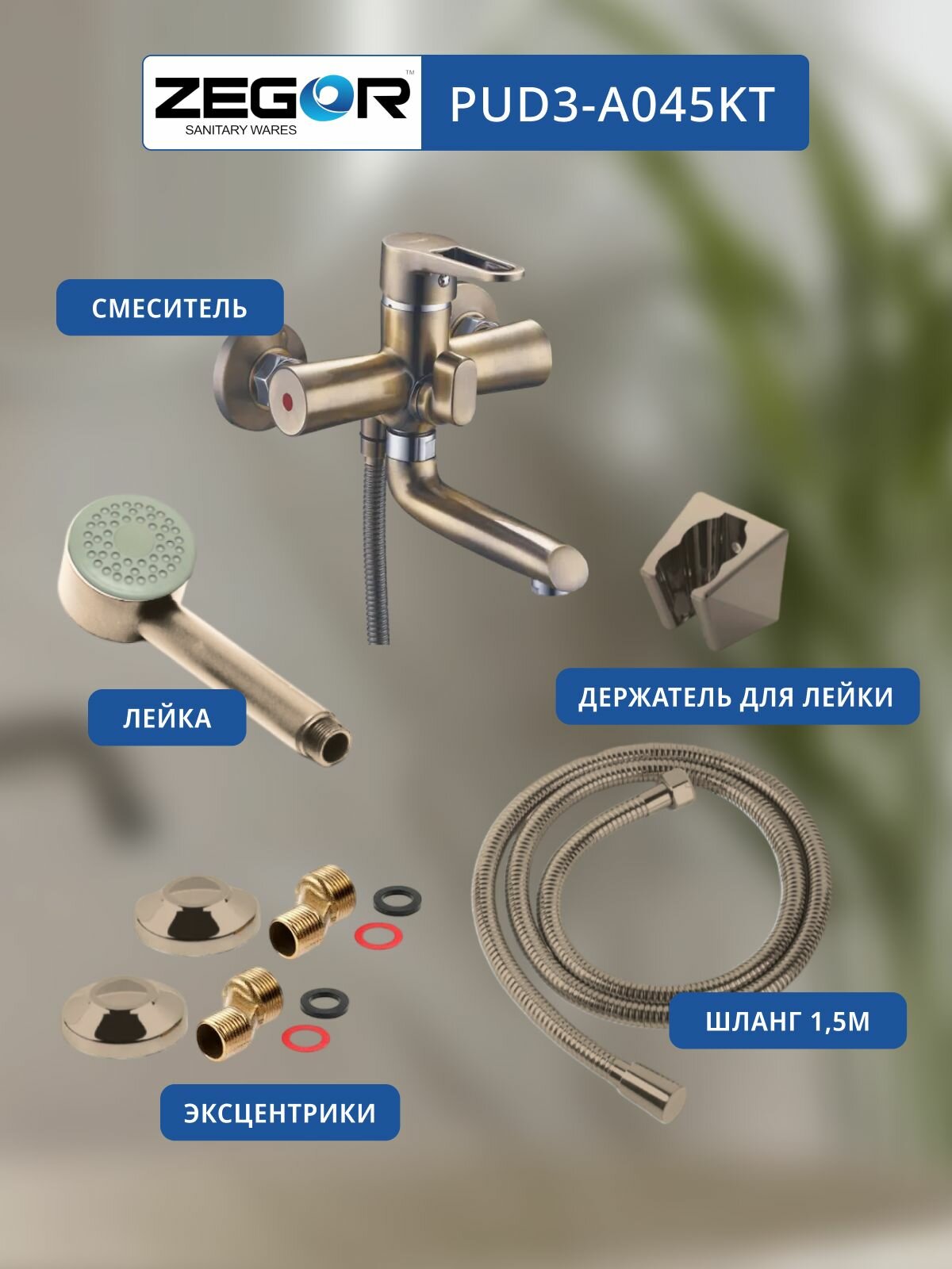 Смеситель для ванны с коротким поворотным изливом, бронза ZEGOR информация: