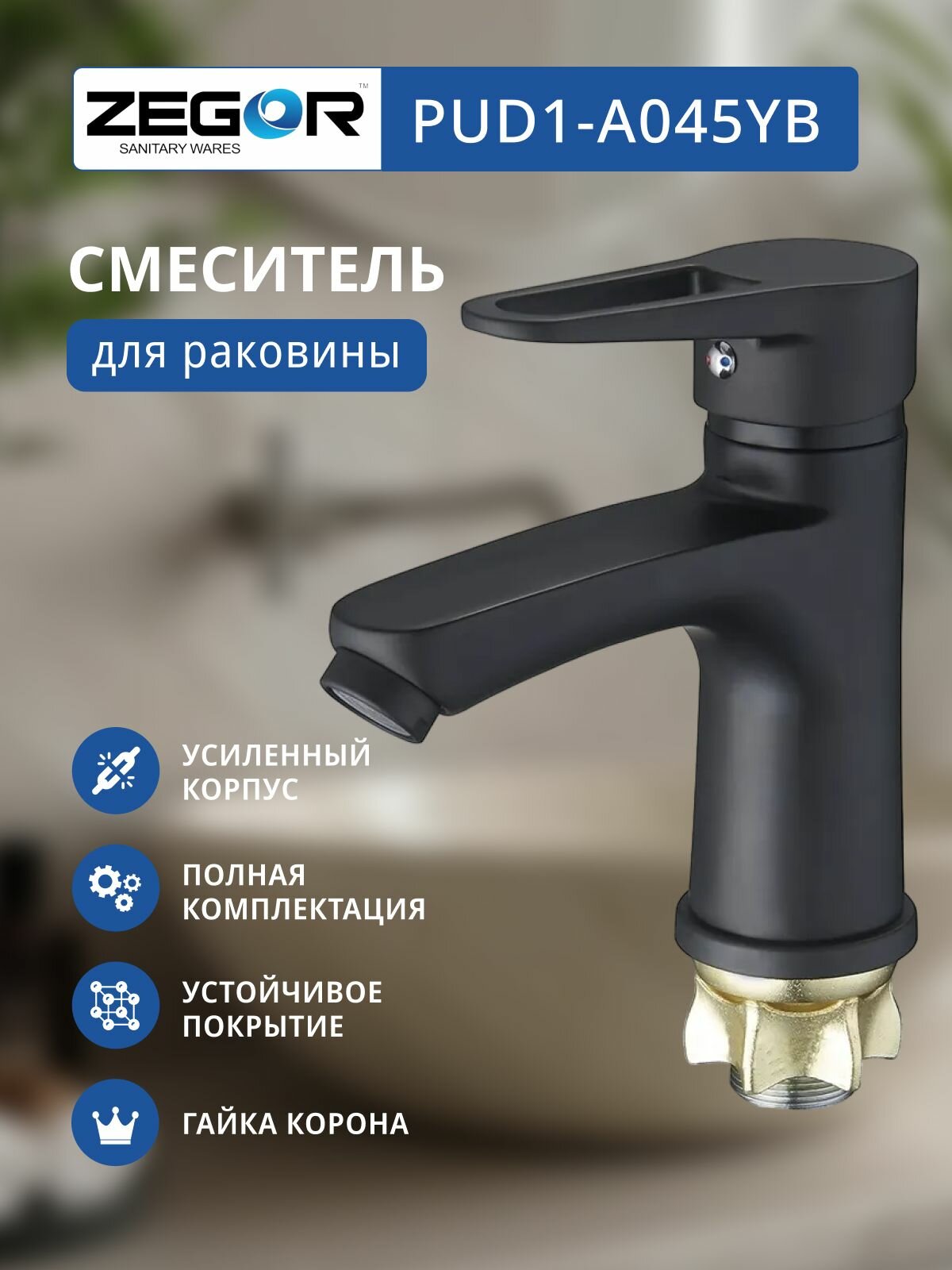 Смеситель для раковины, чёрный ZEGOR информация: