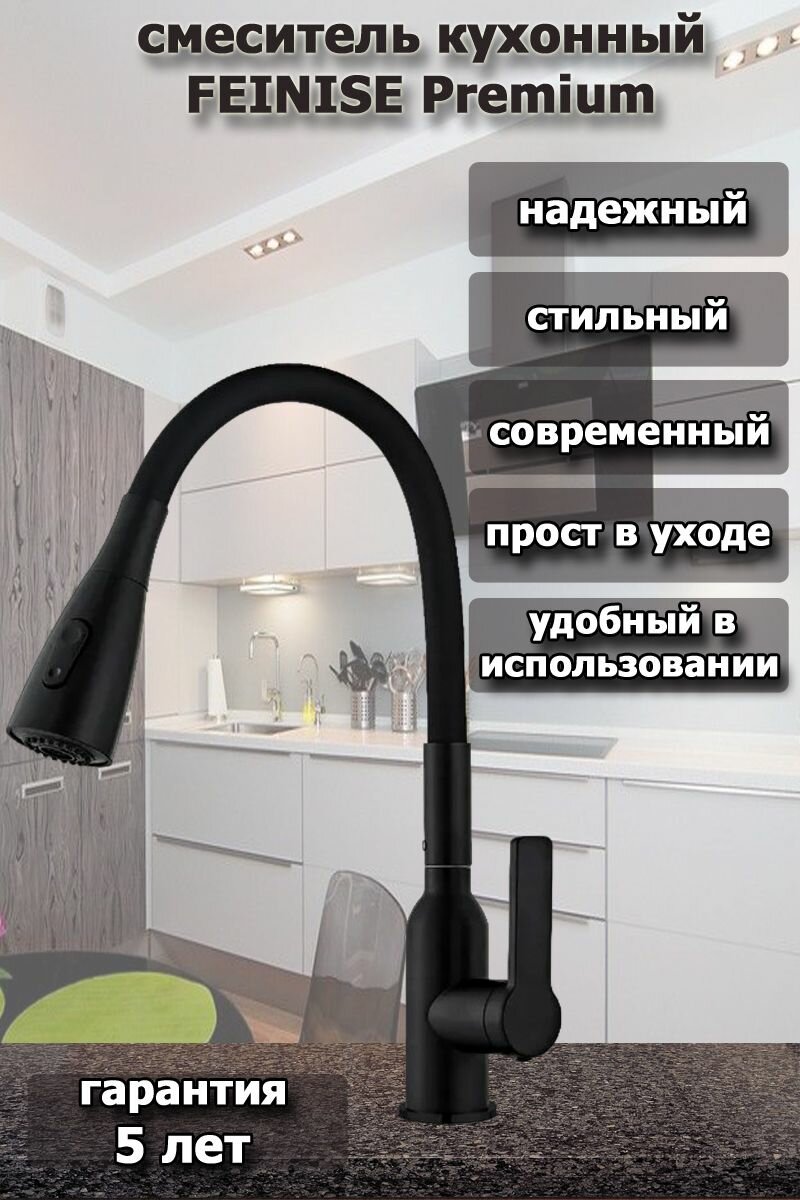 10 цен на Смеситель для кухни латунный черный YINDAF PREMIUM с гибким изливом и картриджным управлением