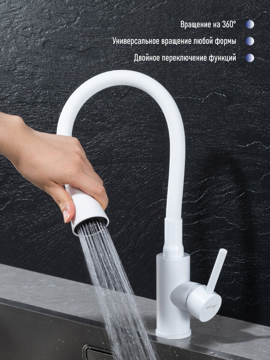 Отзывы на Смеситель Frap YF4044-8, кухонный, гибкий излив, нержавеющая сталь, белый