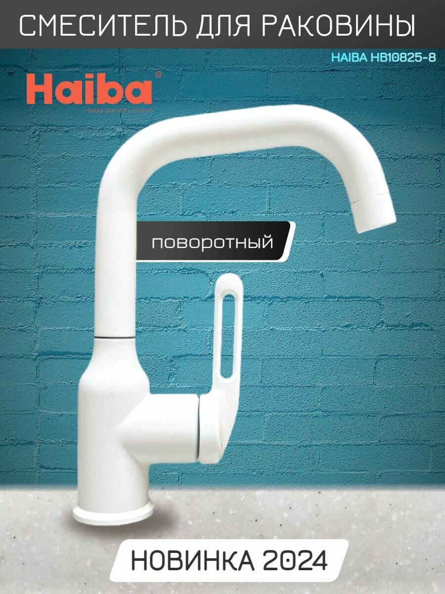 Смеситель для раковины HAIBA HB10825-8, поворотный излив, цвет: белый, материал: латунь. информация: