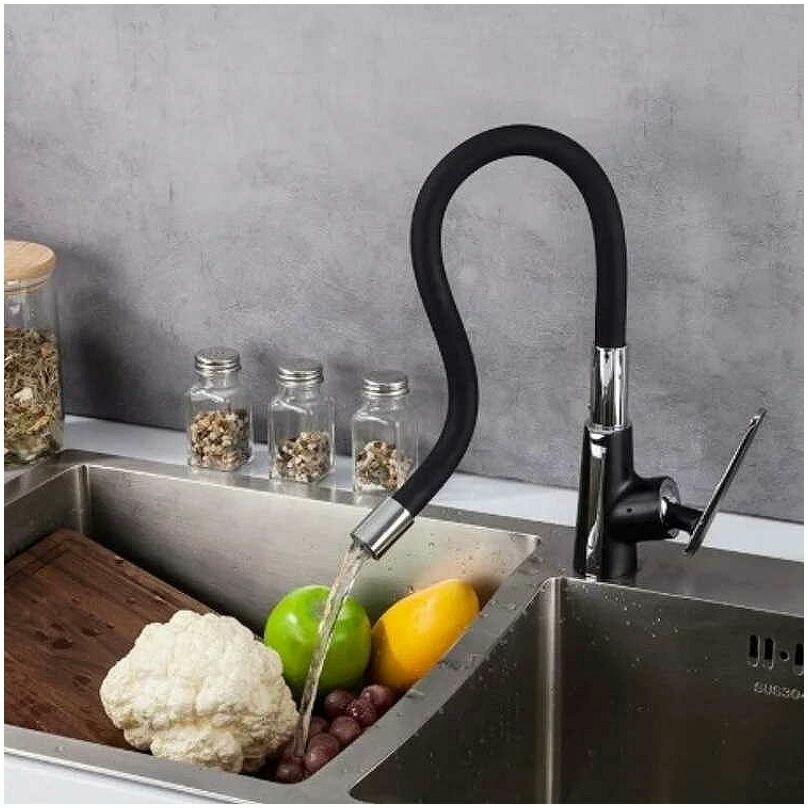 Отзывы на Смеситель для кухни, Frap, с картриджем, гибкий излив, черный, F4457