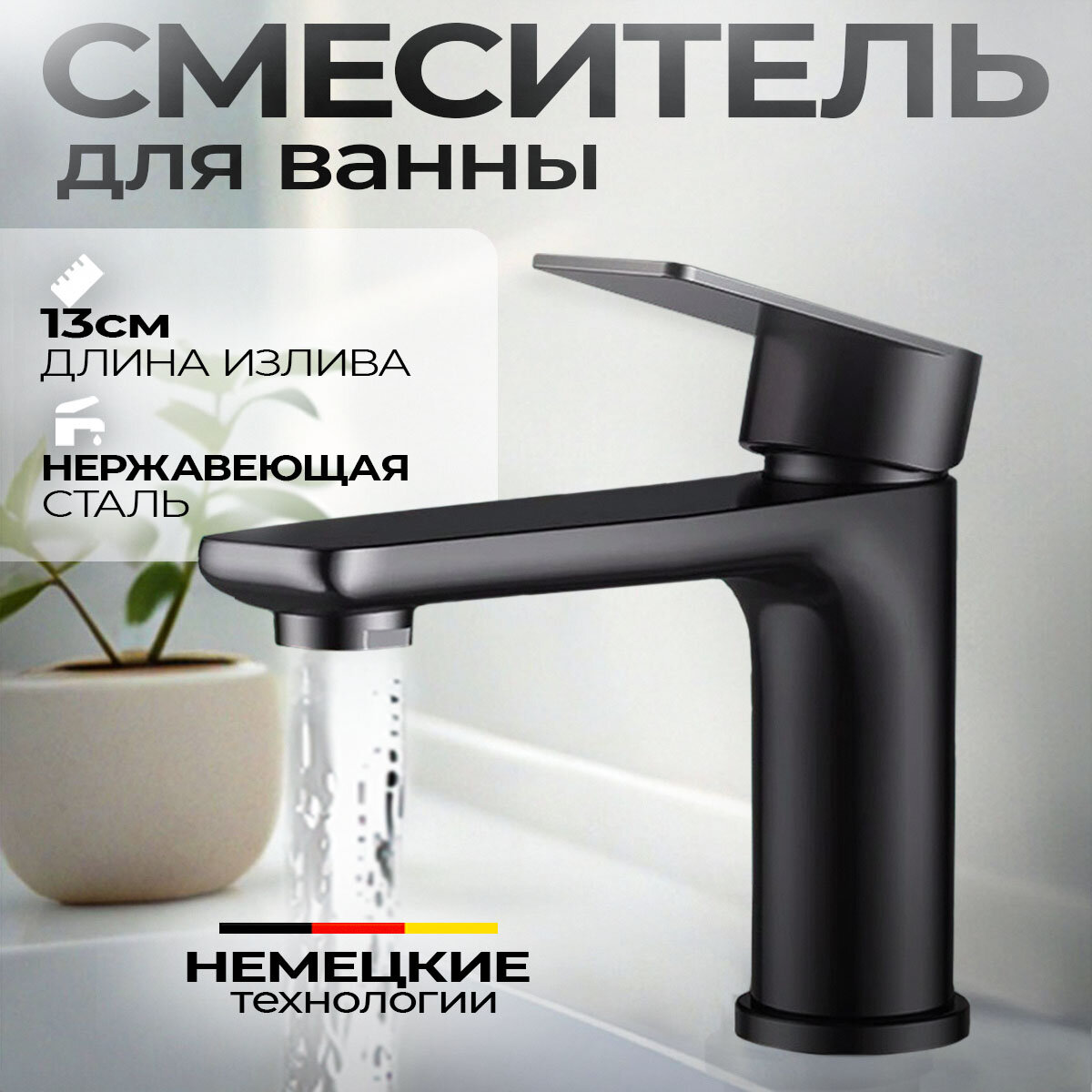 Смеситель для раковины из нержавеющей стали Forma Black черный матовый, кран для ванной, без шлангов в комплекте информация: