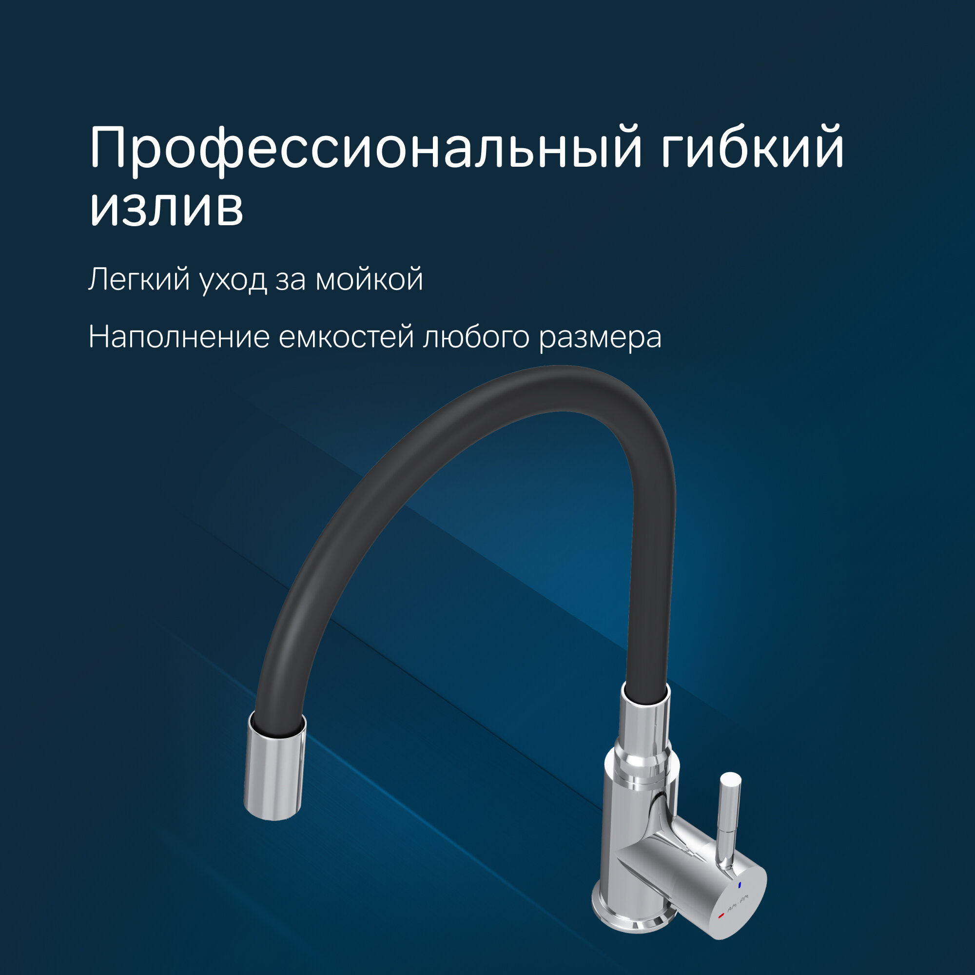 Отзывы на Смеситель для кухни AM.PM X-Joy S с гибким изливом, черный/хром