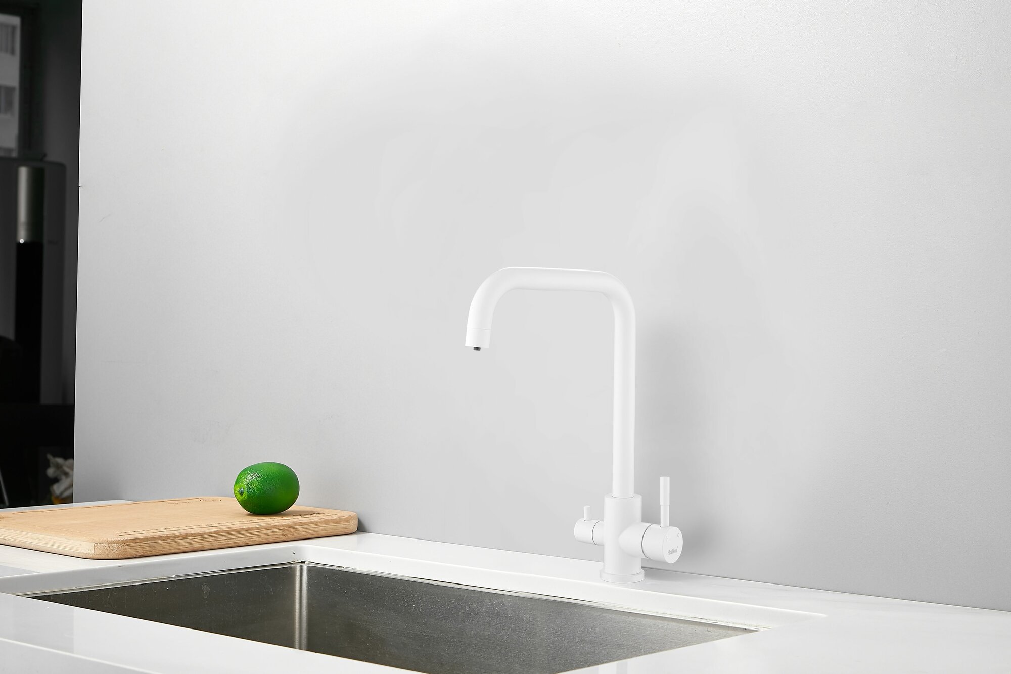 Смеситель для кухни с подключением фильтра питьевой воды, HAIBA, белый информация: