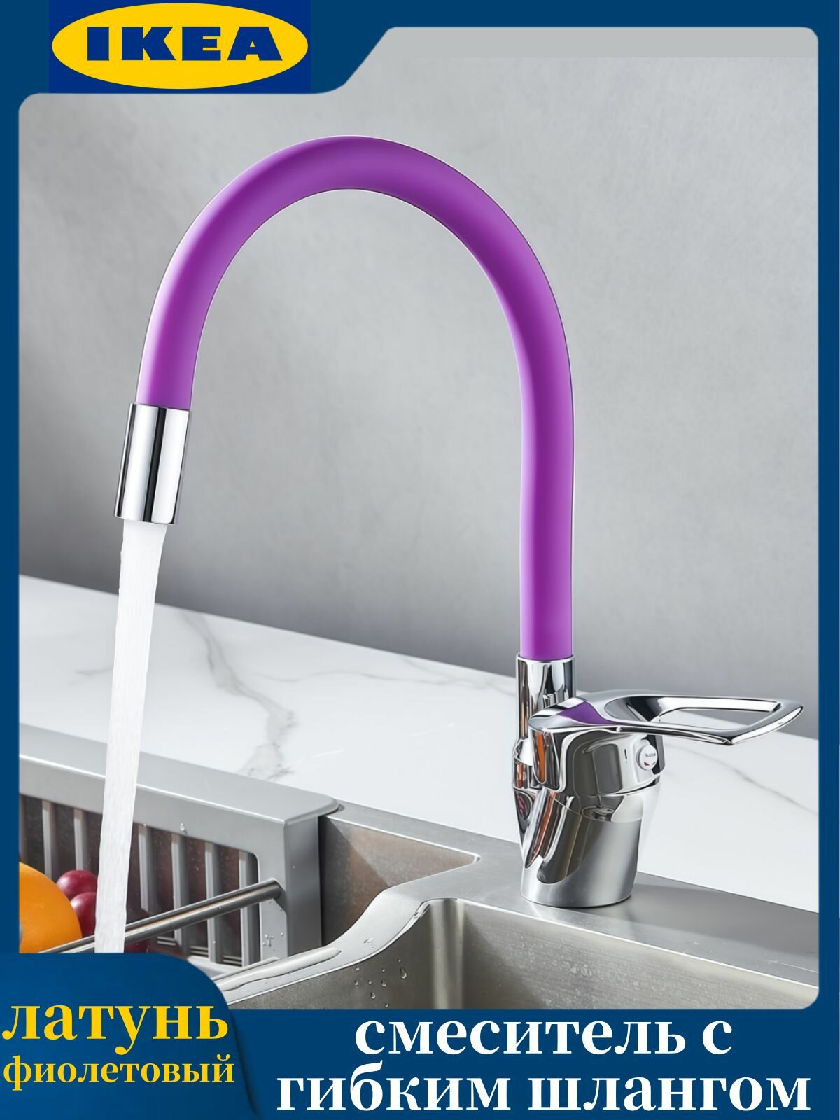 Смеситель для кухни IKEA с гибкой насадкой, оранжевый/хромированный, смеситель для кухни из латуни 3 699 ₽