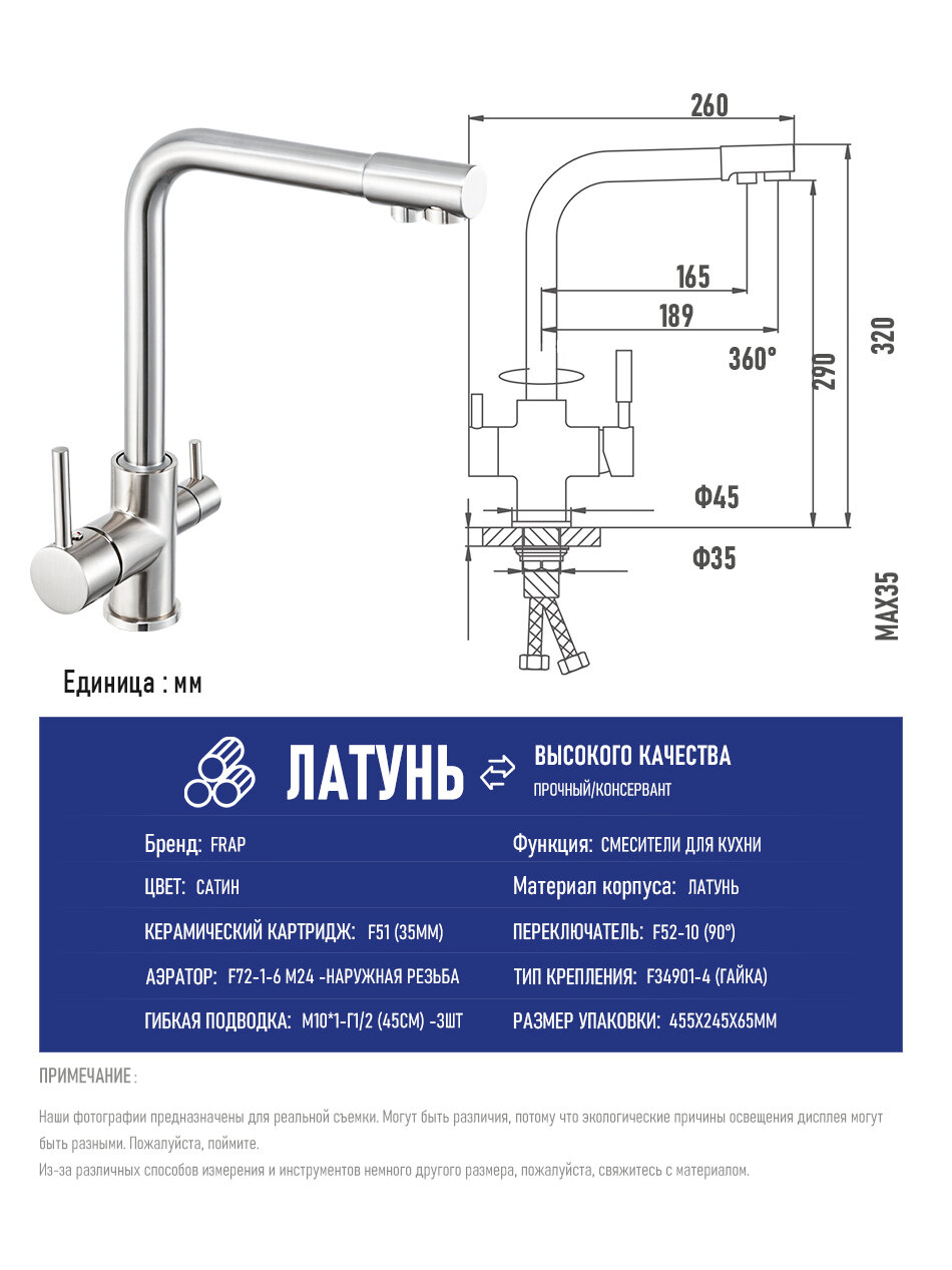 Отзывы на Cмеситель для кухни с фильтром для воды смеситель на кухню латунь Frap YF4352-BN
