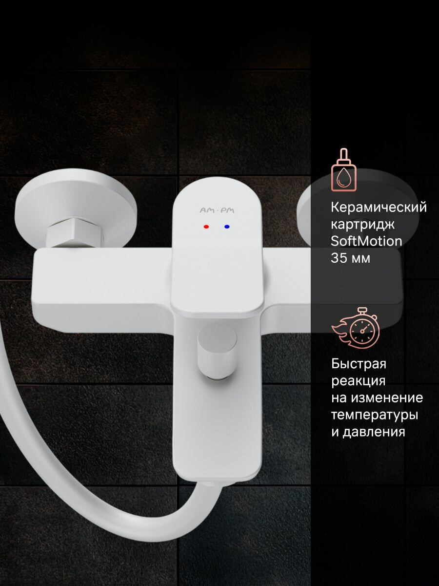 Смеситель AM.PM Brava для ванна и душа, латунь, цвет белый, 2 монтажных отверстия информация: