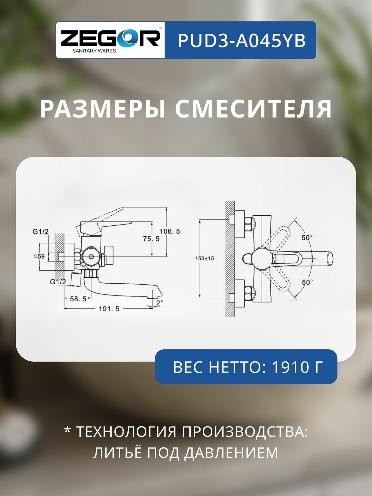 Смеситель для ванны с коротким поворотным изливом, чёрный ZEGOR информация: