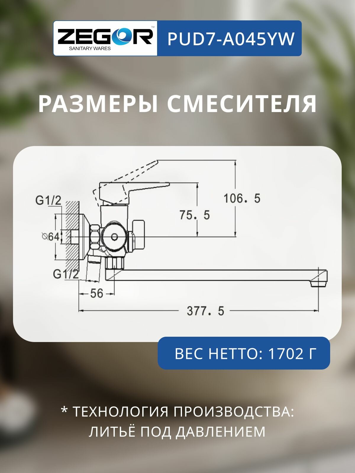 Смеситель для ванны с длинным поворотным изливом, белый ZEGOR информация: