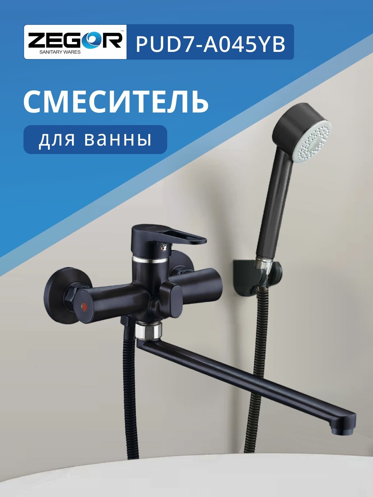 Смеситель для ванны с длинным поворотным изливом, чёрный ZEGOR информация: