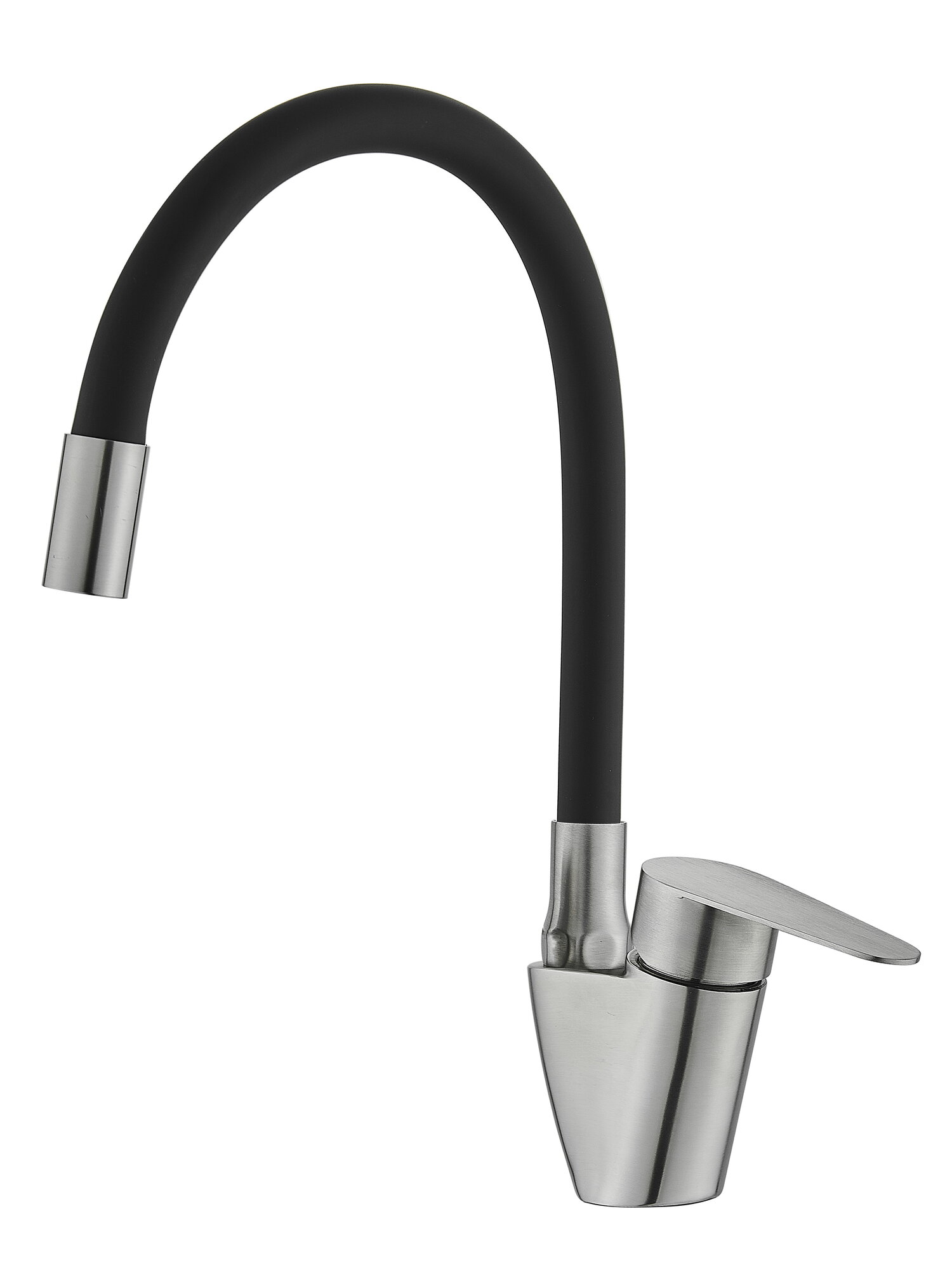 Смеситель на кухню Potato P57310S-6 с гибким чёрным изливом, картридж 35 мм, нержавейка, крепление гайка информация: