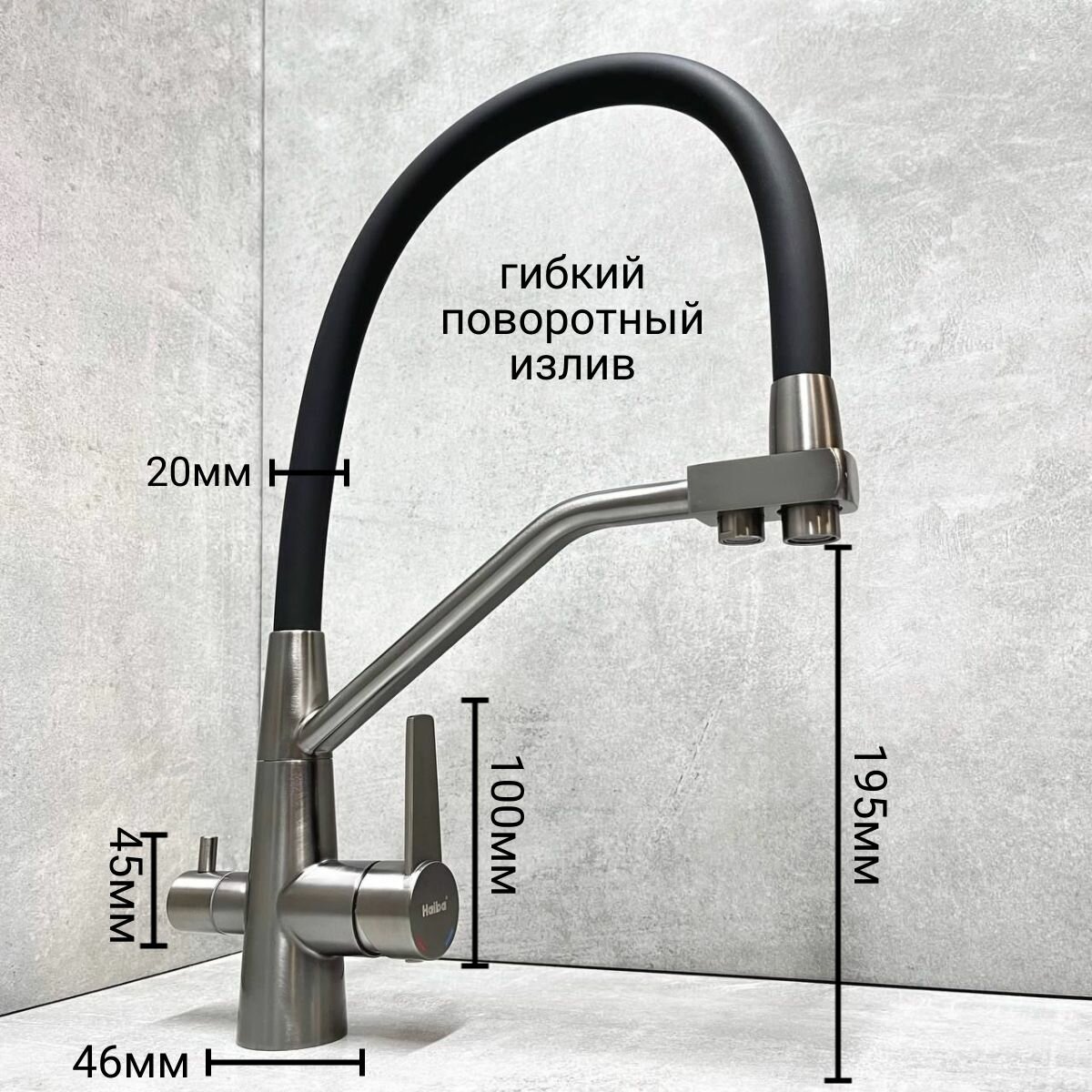 Смеситель для кухни Haiba HB76822-3 с гибким силиконовым изливом, подключением фильтра питьевой воды информация: