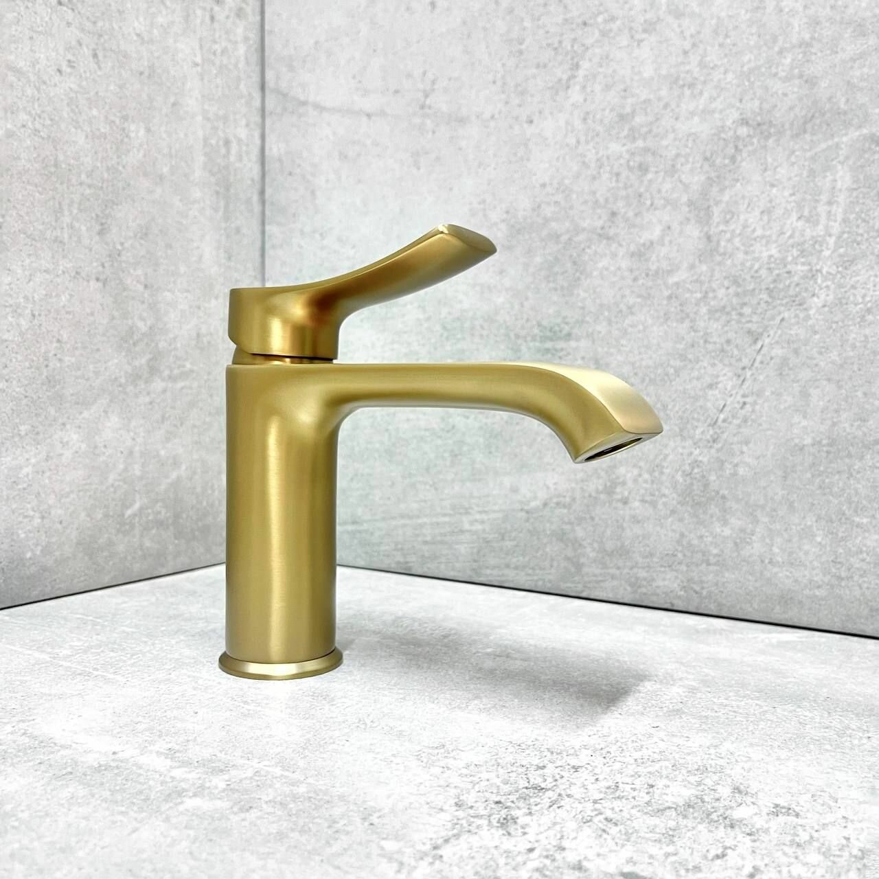 Смеситель для раковины Haiba HB10553-5, монолитный излив, материал: латунь, цвет: золотистый информация: