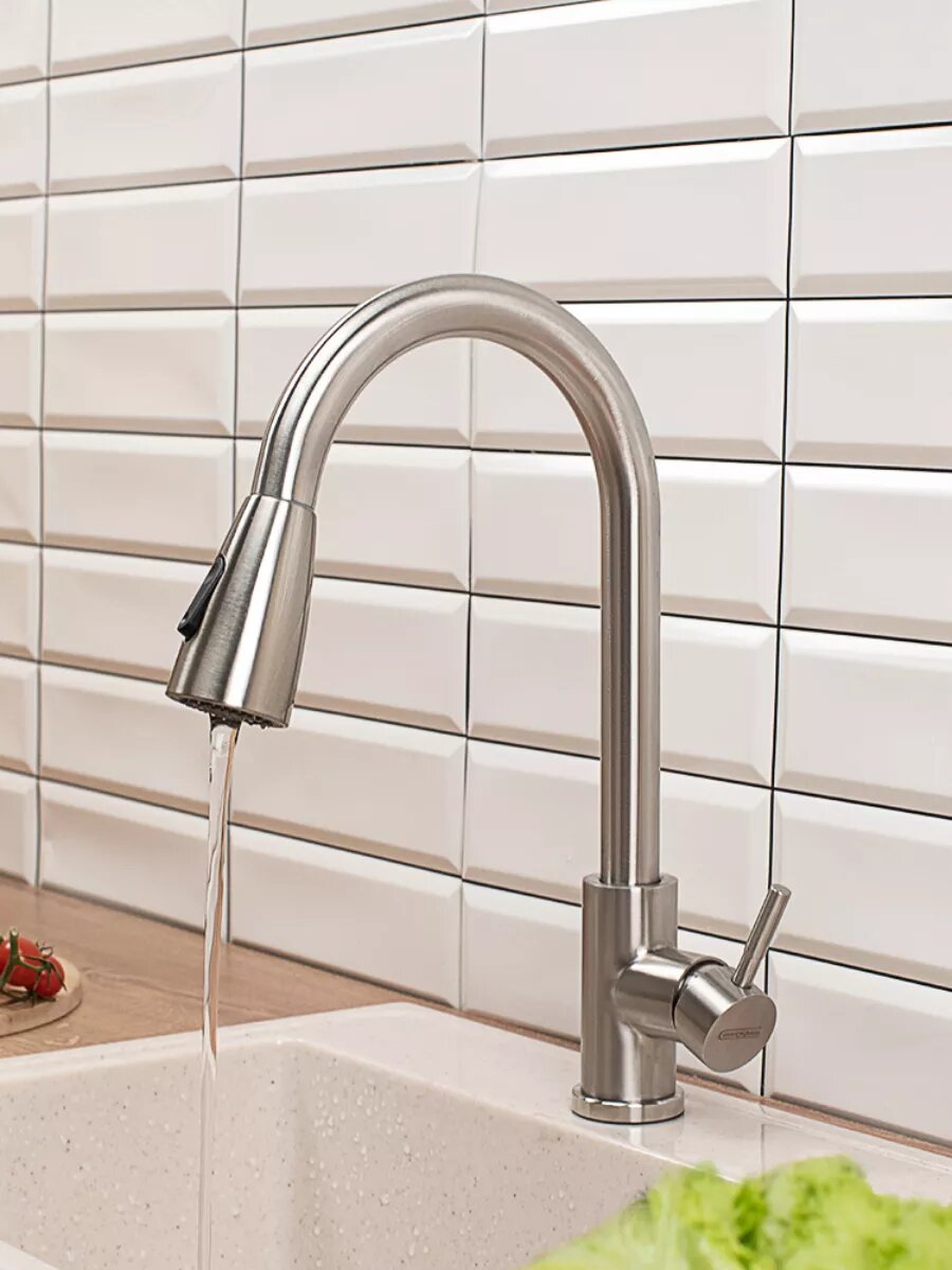Отзывы на Смеситель для кухни с выдвижным изливом, режим душ, нержавеющая сталь