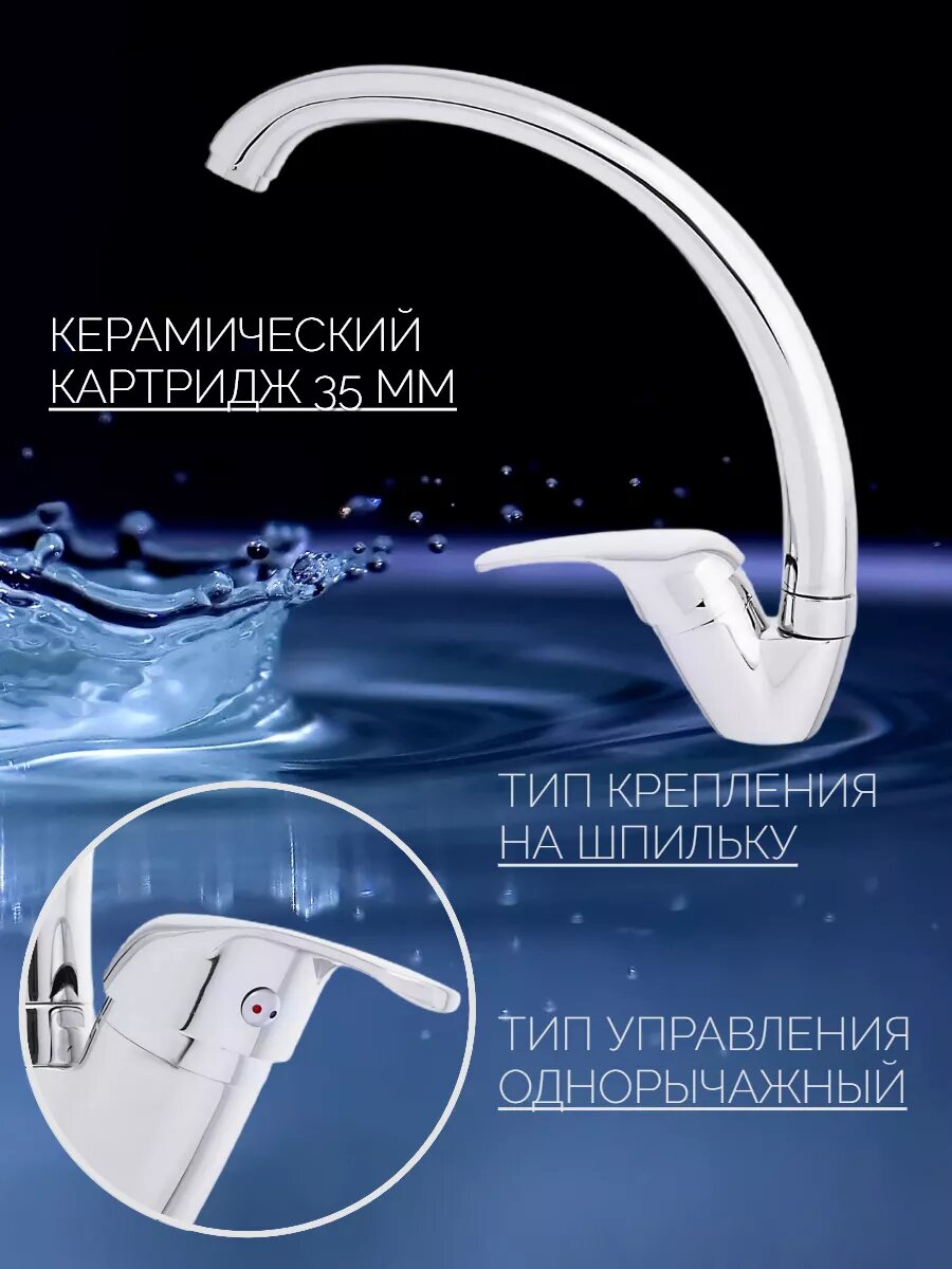 Смеситель для кухни с высоким поворотным изливом, цинк, картридж 35 мм информация: