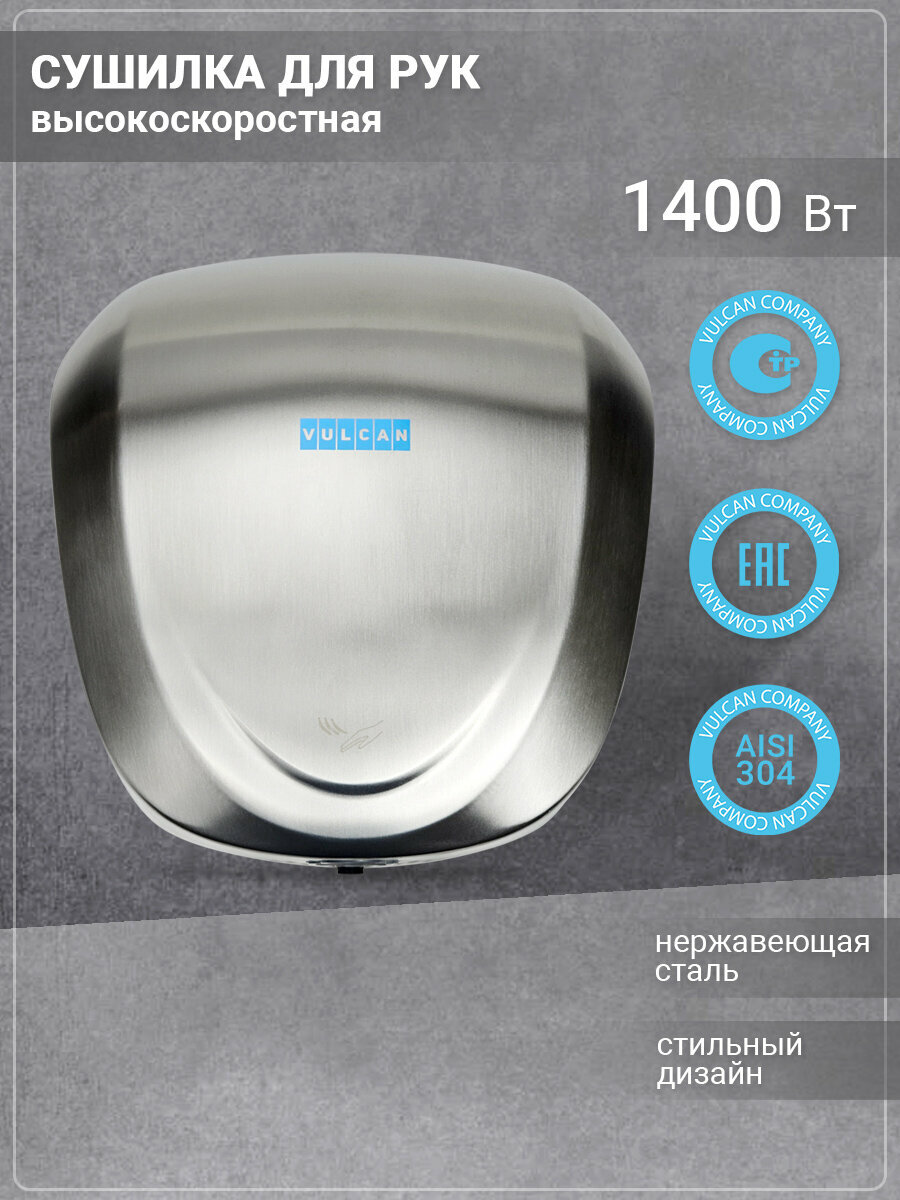 Сушилка для рук высокоскоростная из нержавеющей стали VULCAN арт. 04А информация: