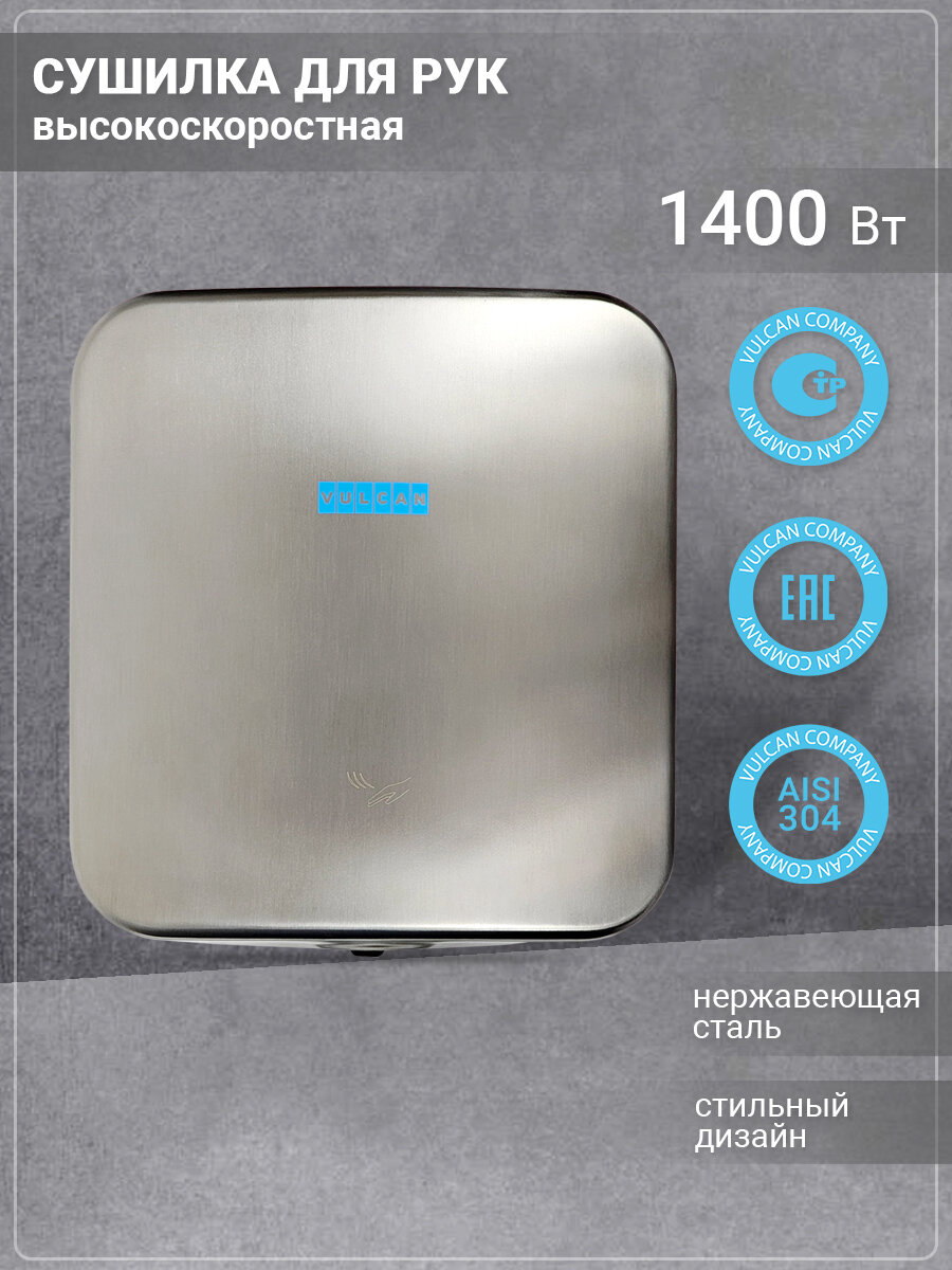 Сушилка для рук высокоскоростная из нержавеющей стали VULCAN арт. 02А информация: