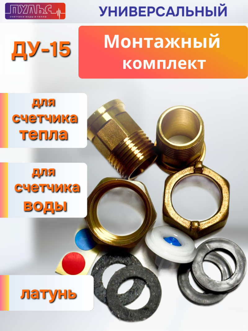 Монтажный комплект для счётчика тепла и воды ДУ-15 Пульс информация: