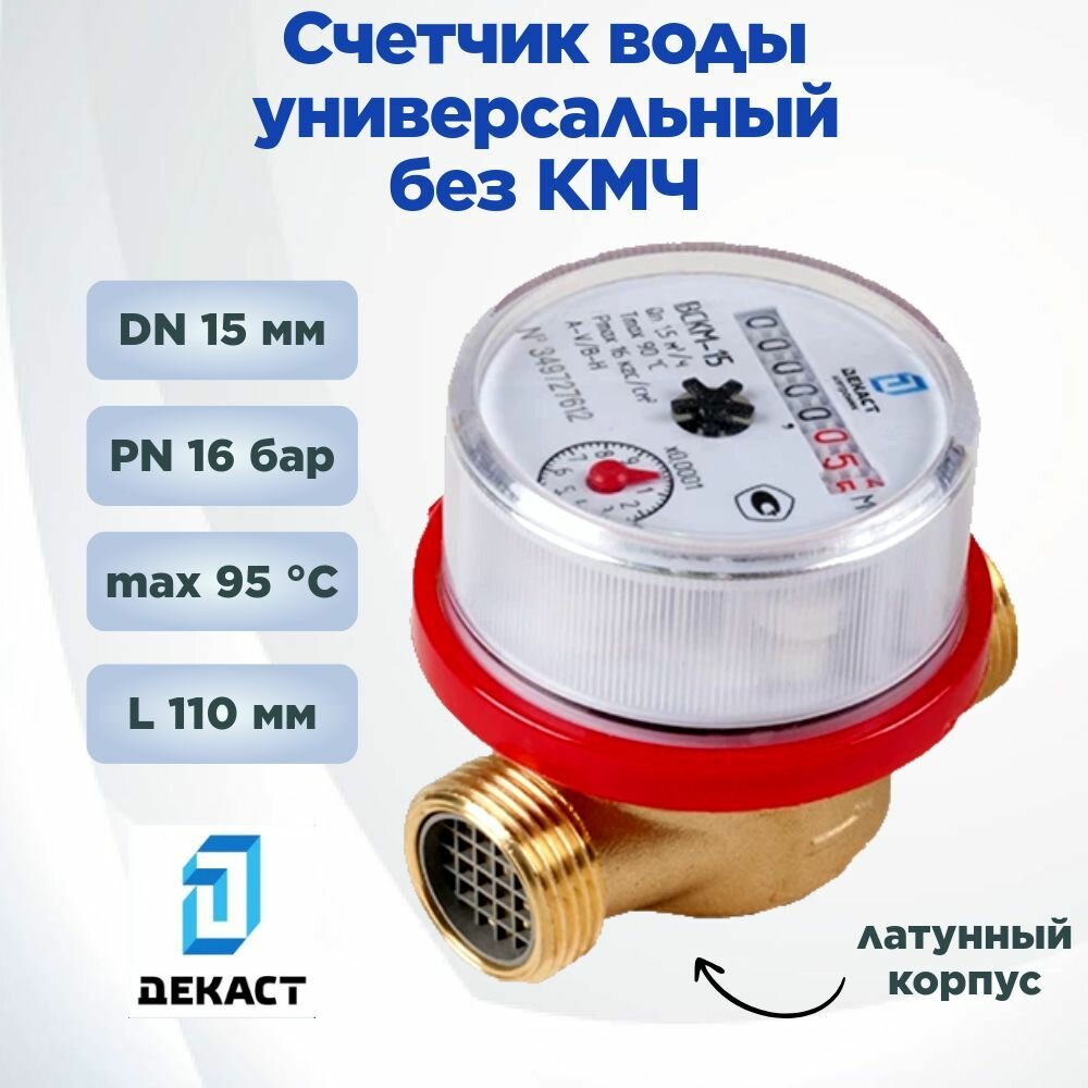 Счетчик воды универсальный бытовой 110мм, DN 15мм Декаст ВСКМ-15, одноструйный, для холодной и горячей воды, без кмч информация:
