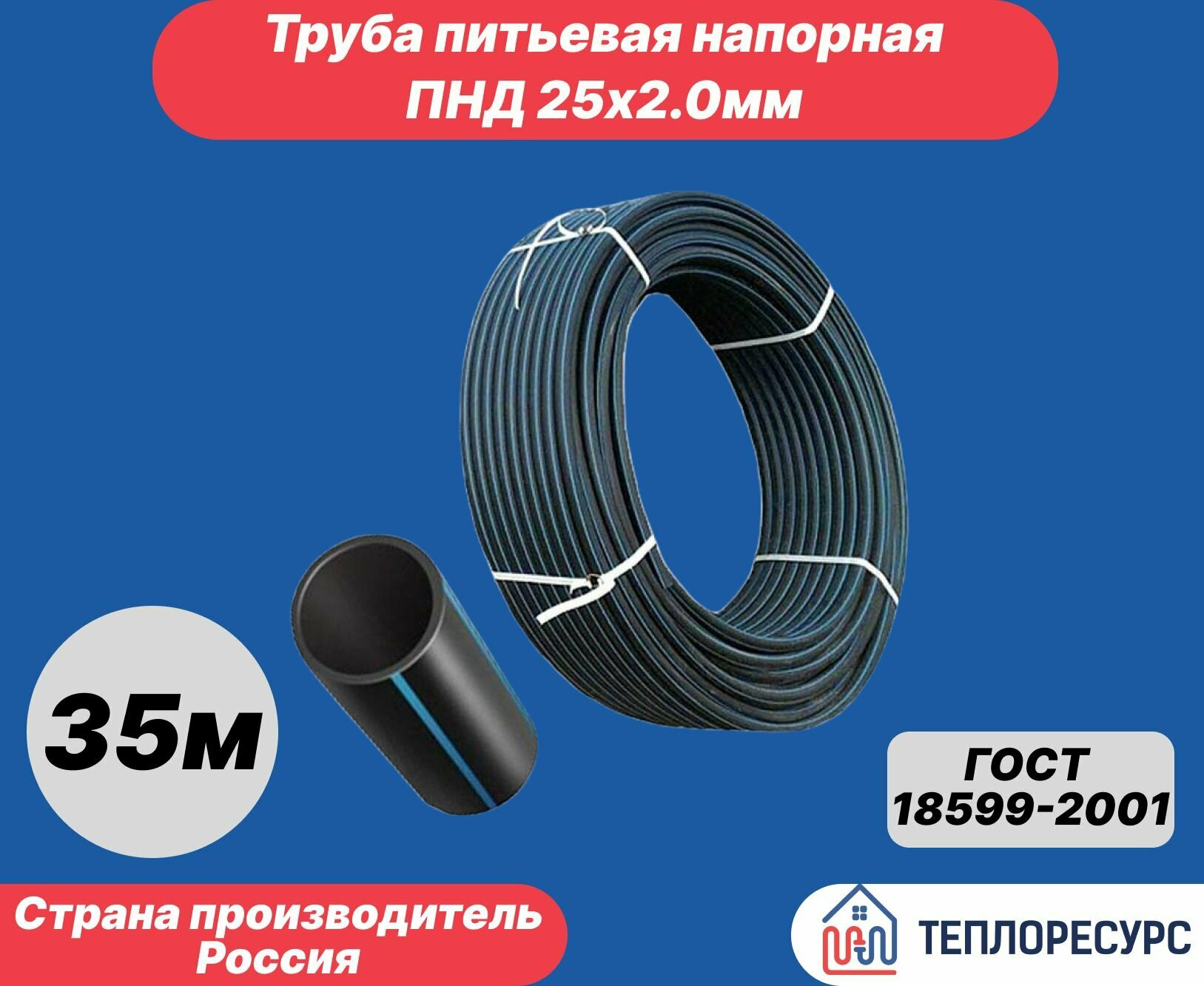 Отзывы на Труба питьевая напорная ПНД 25х2,0 ГОСТ 18599-2001 бухта 35 метров