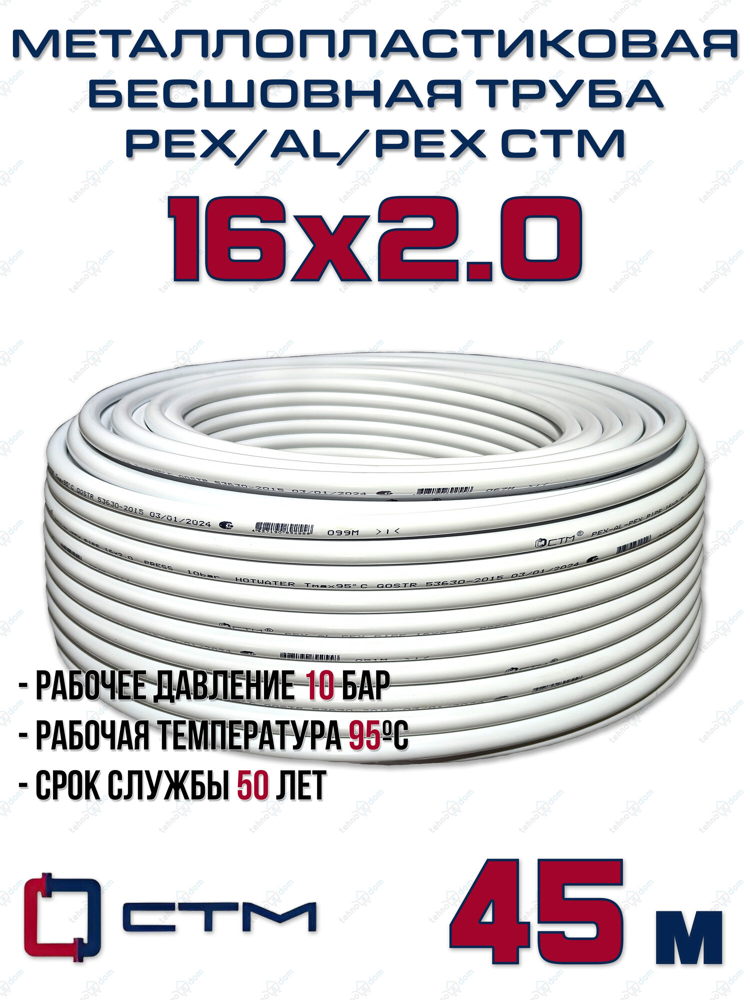 Труба металлопластиковая бесшовная CTM PEX-AL-PEX 16x2,0 (белая) отрезок 45м информация:
