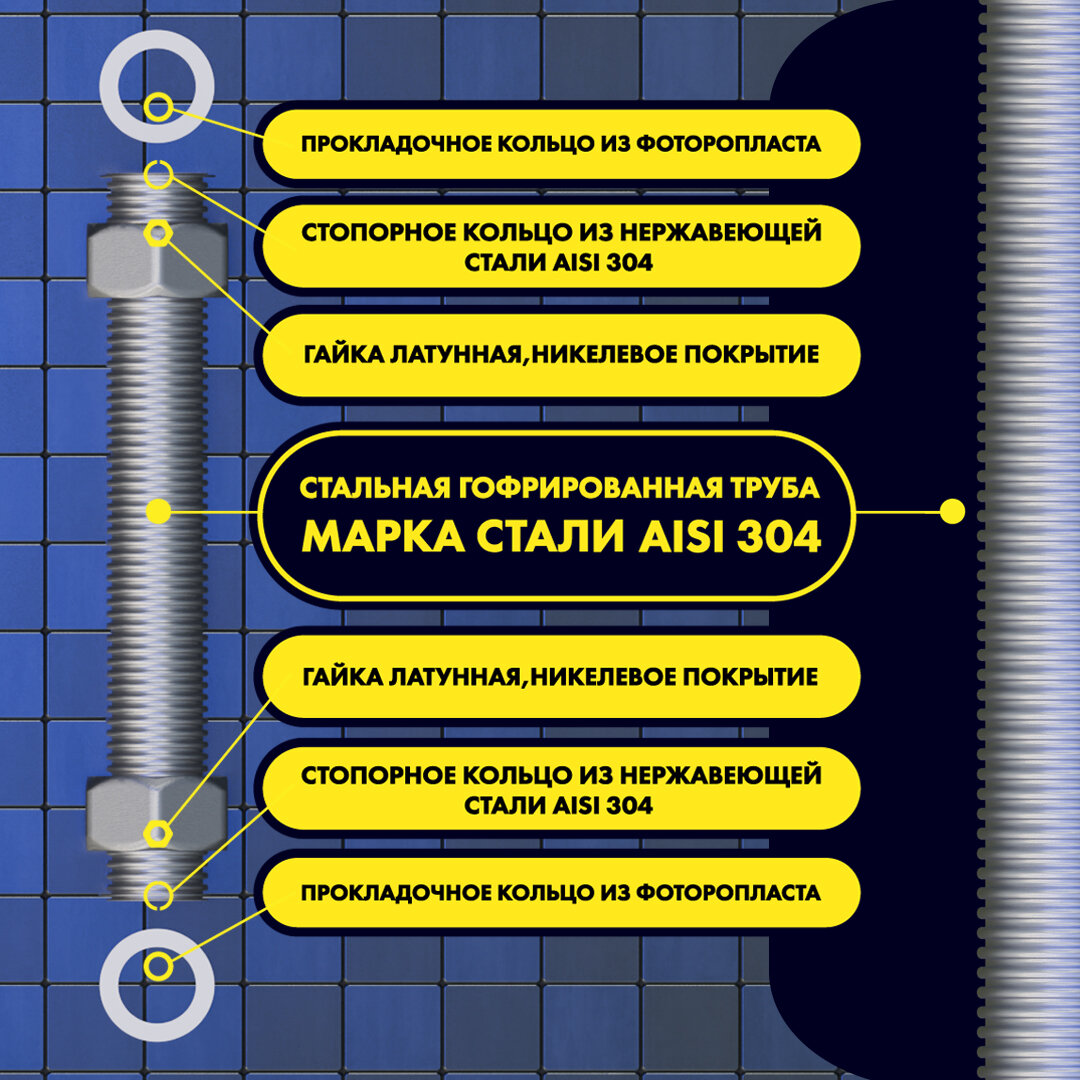 Сильфонная подводка для воды из нержавеющей стали 1/2 дюйма 0.5 м 660 ₽
