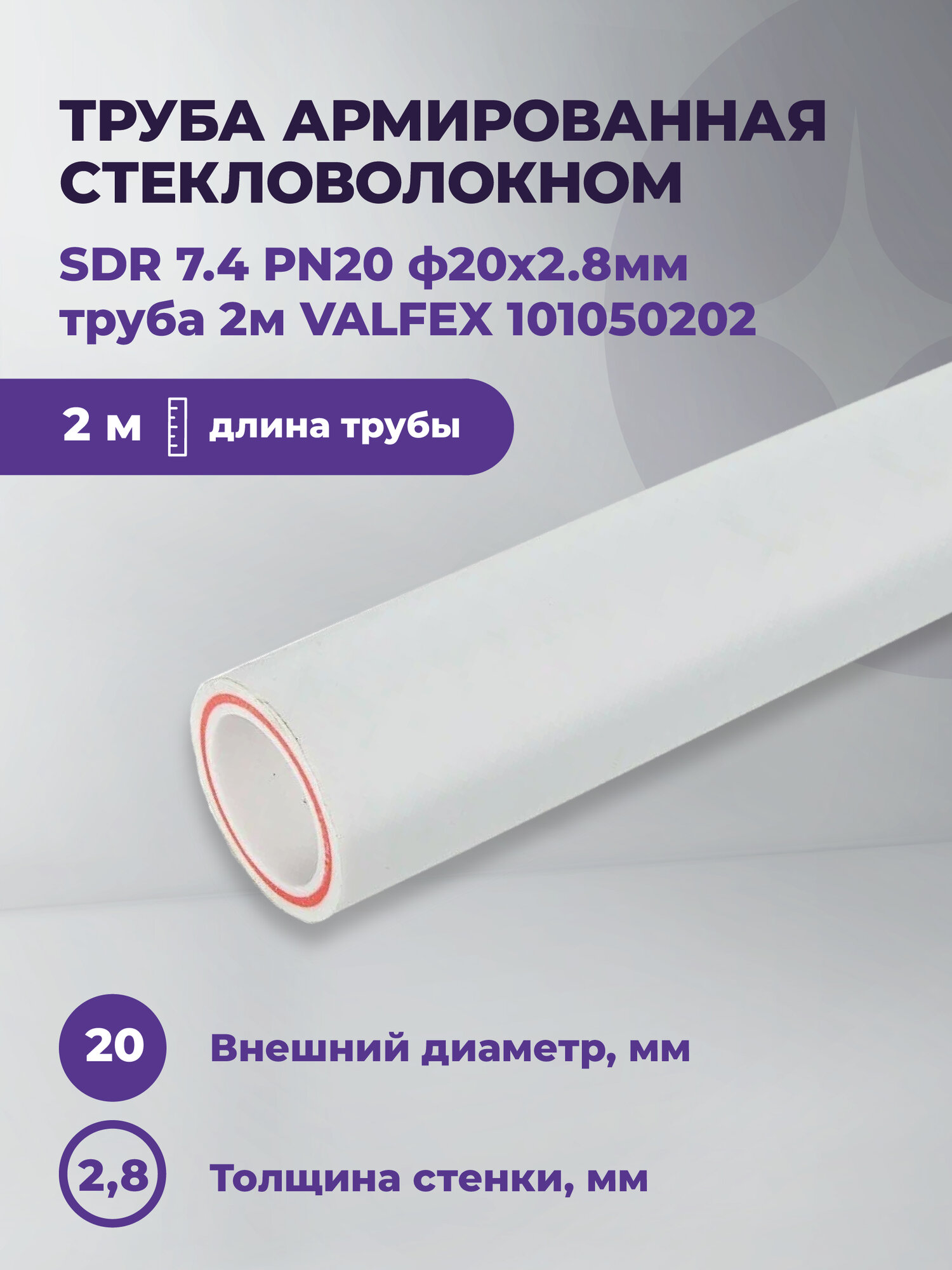 Труба армированная стекловолокном SDR 7.4 PN20 ф20х2.8мм труба 2м VALFEX 101050202 информация: