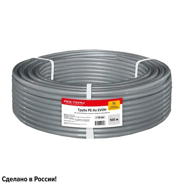 Отзывы на Труба из сшитого полиэтилена для отопления Ростерм PE-Xa EVOH 16x2.2 мм PN16 1 м на отрез бухта 100 м серая