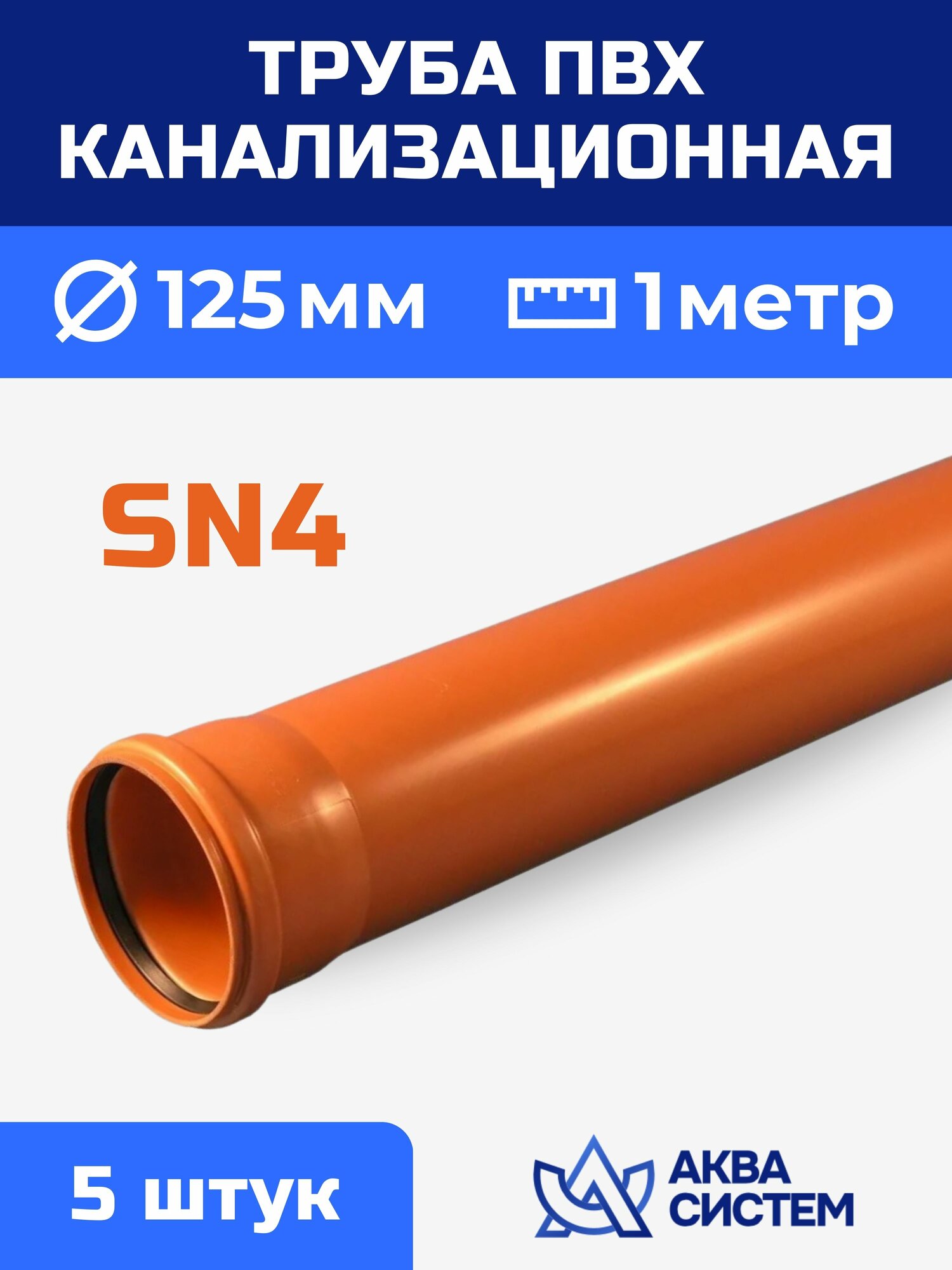 Труба ПВХ 125 мм канализационная 1 (м) , стенка 3,2 мм, SN4 (5 шт.) информация: