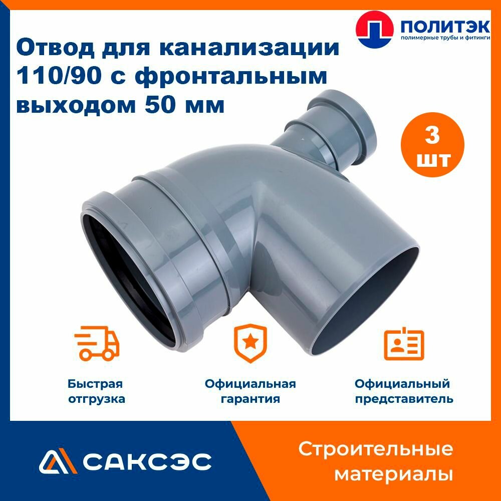 10 цен на Отвод для внутренней канализации 110/90 с фронтальным выходом 50 полипропиленовый, Политэк, 3шт.
