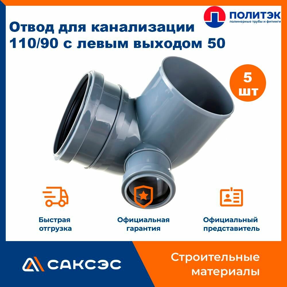 10 цен на Отвод для внутренней канализации 110/90 с левым выходом 50 полипропиленовый, Политэк, 5шт.