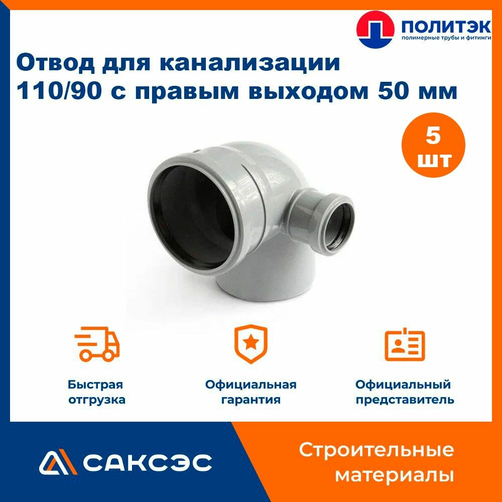 Отвод для внутренней канализации 110/90 с правым выходом 50 полипропиленовый, Политэк, 5шт. информация: