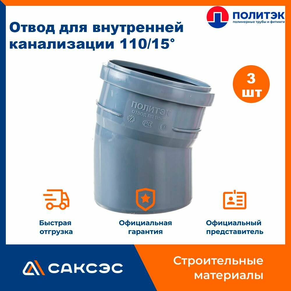 Отвод для внутренней канализации 110/15 полипропиленовый, Политэк, 3шт. информация: