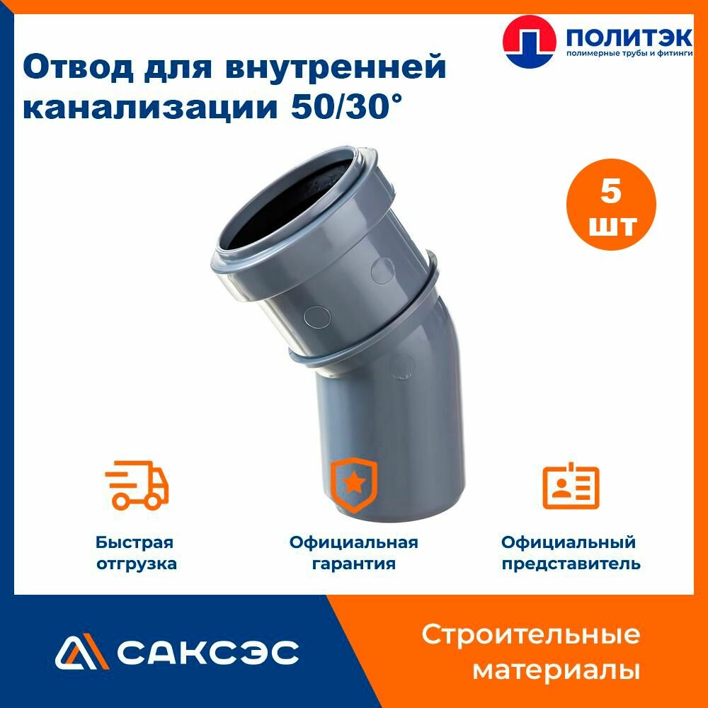 10 цен на Отвод для внутренней канализации 50/30 полипропиленовый, Политэк, 5шт.