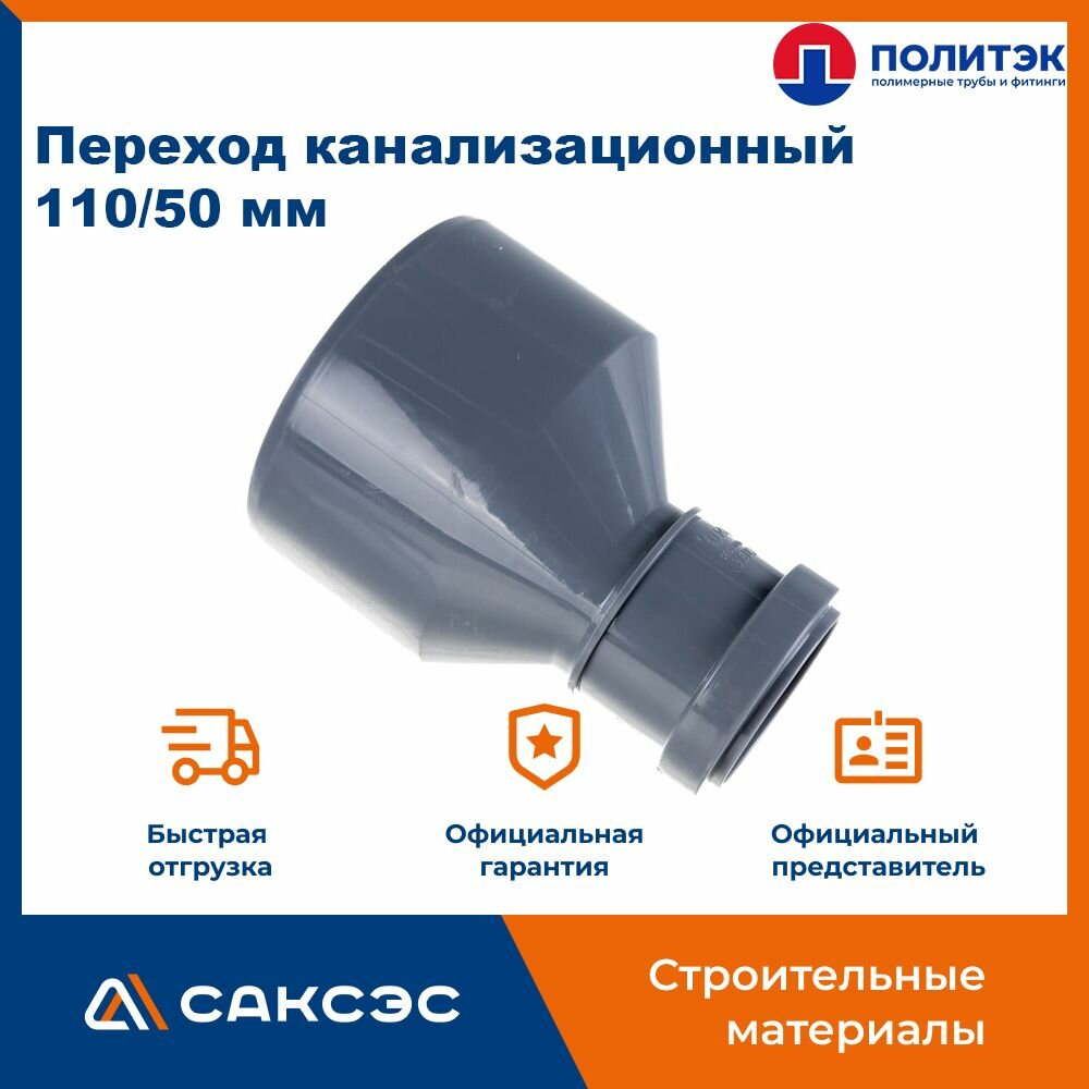 Переход канализационный 110/50 мм, Политэк / Переход эксцентрический информация: