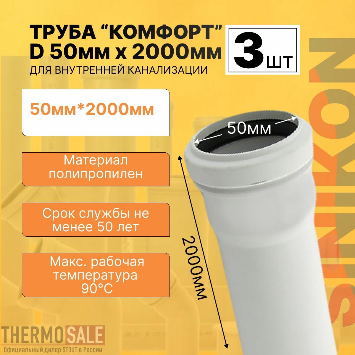 Труба канализационная 3 шт комфорт плюс D 50мм х 2000мм цвет белый Sinikon информация: