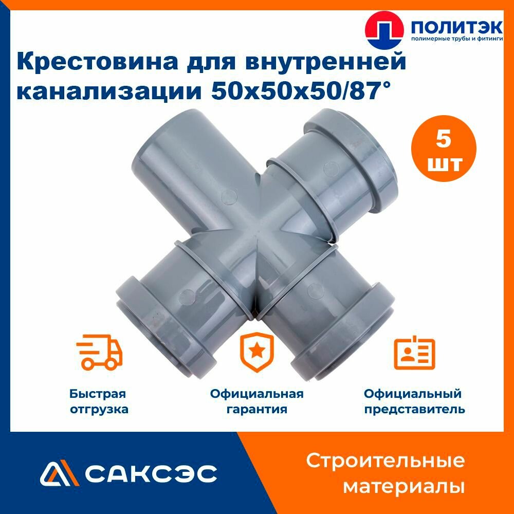 Крестовина одноплоскостная для внутренней канализации 50x50x50/87 полипропиленовая, Политэк, 5шт. / Крестовина канализационная 50 50 50 информация: