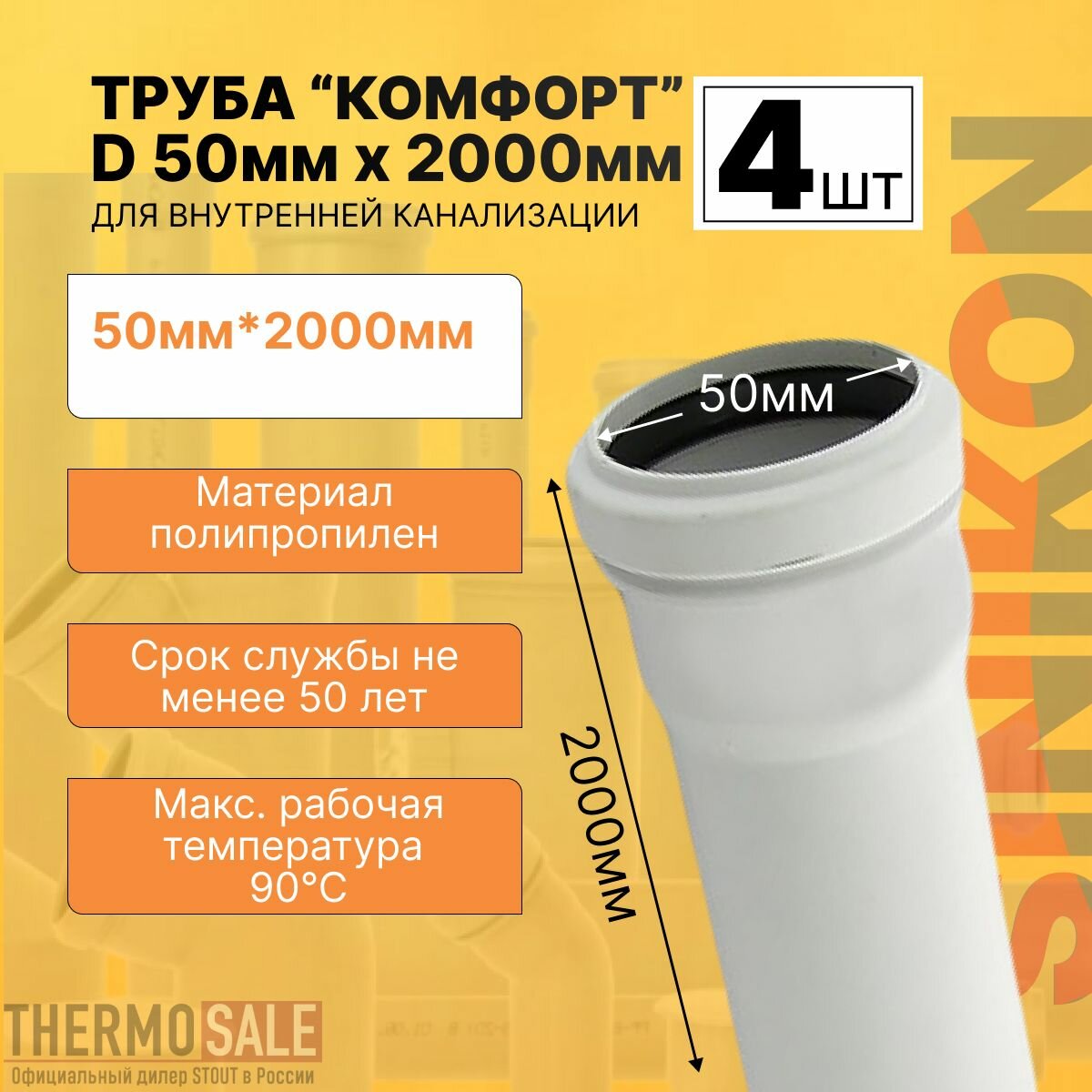Отзывы на Труба канализационная 4 шт комфорт плюс D 50мм х 2000мм цвет белый Sinikon