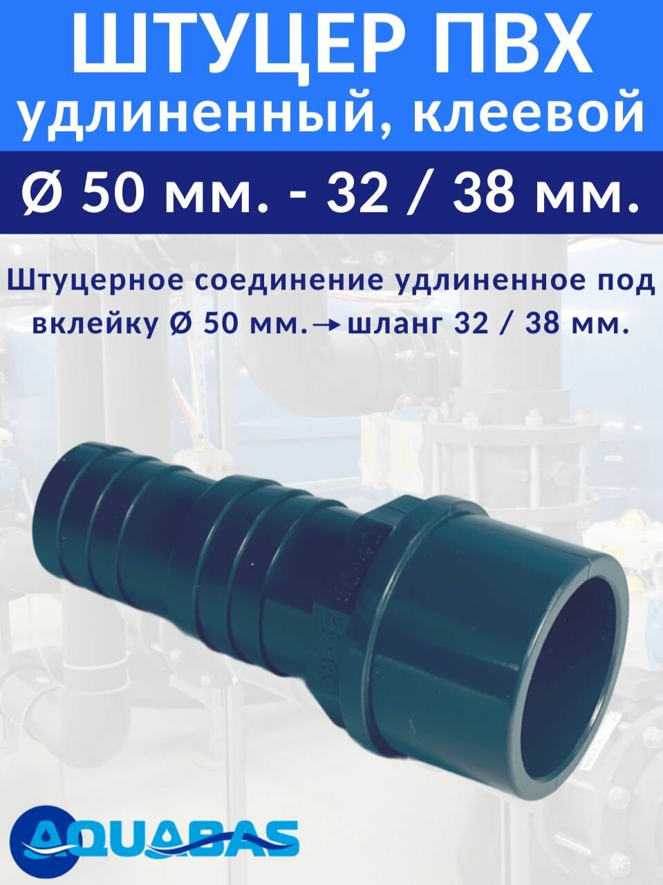Штуцерное соединение D32-38-50 ПВХ удлиненное, адаптер для шланга (7135050) информация: