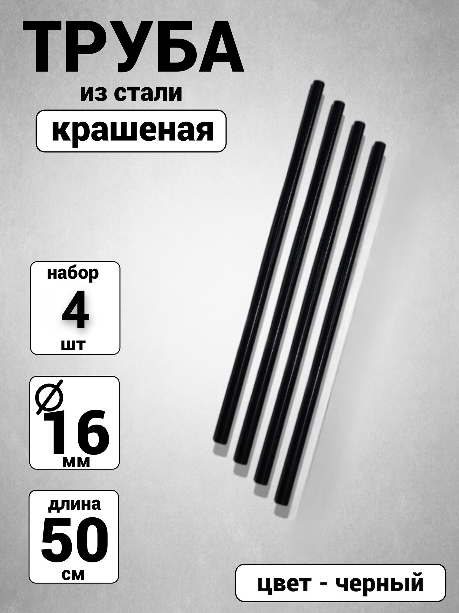 Труба из стали 50 см 4 штук труба для конструкции универсальных каркасов, цвет черный d16 см информация: