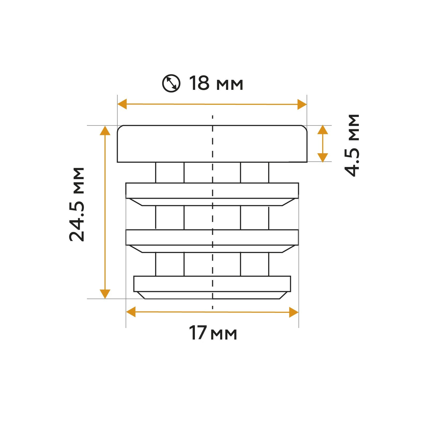 Пластиковая заглушка для круглых труб 18 мм (10шт) 185 ₽