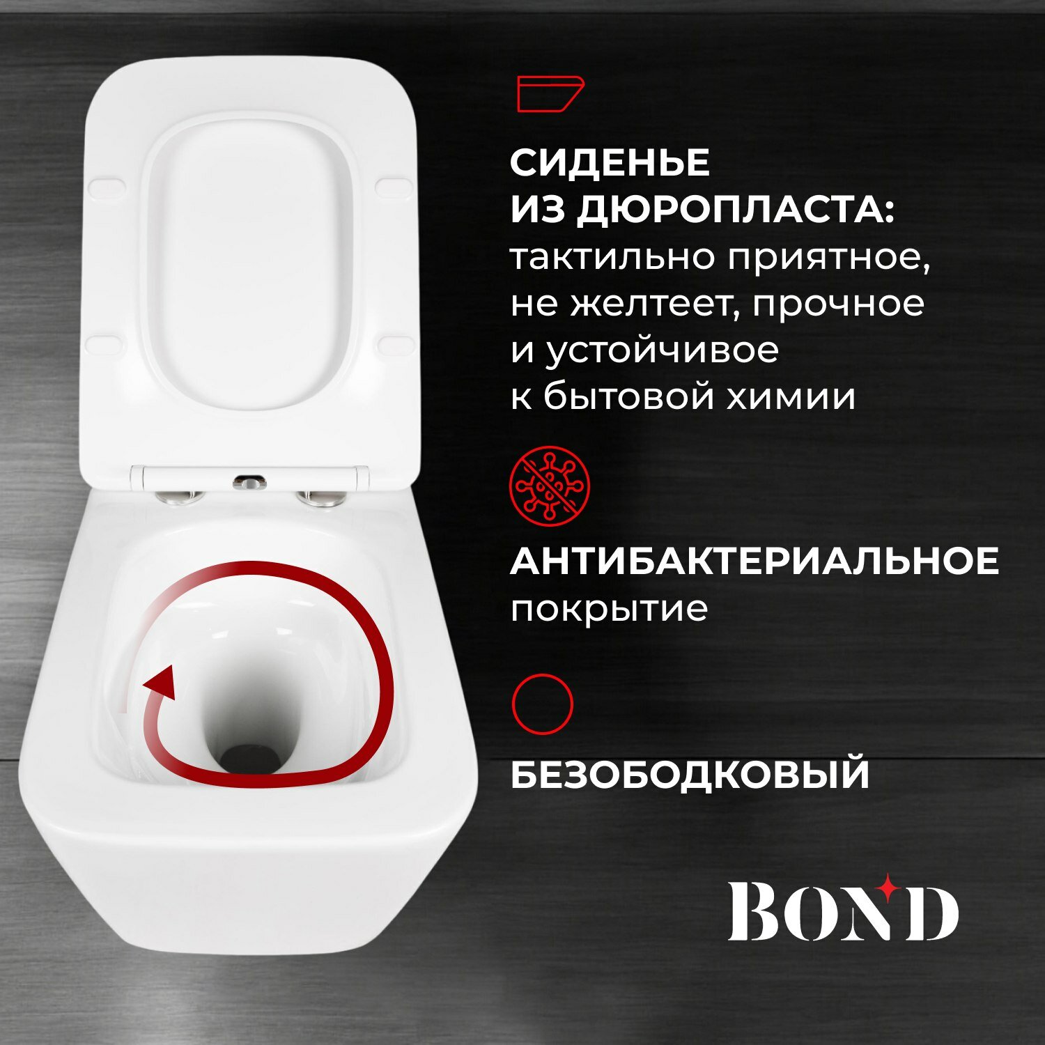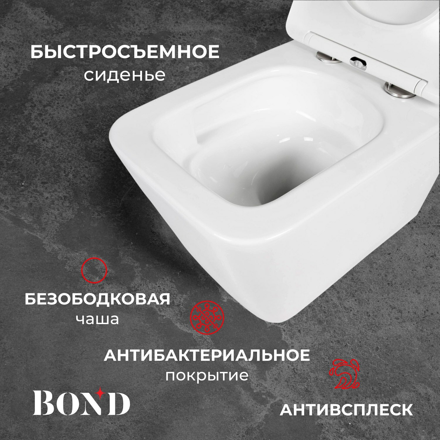 Унитаз подвесной со смывом торнадо безободковый белый с сиденьем микролифт BOND Cube F14-10 информация:
