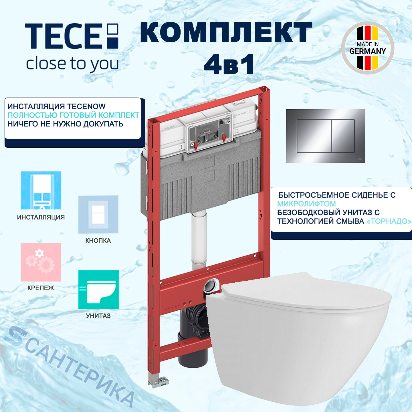 10 цен на Инсталляция Tece TECEnow 9400412 с подвесным унитазом Santerika SAN. UNT.01, смыв "Торнадо", сиденье микролифт