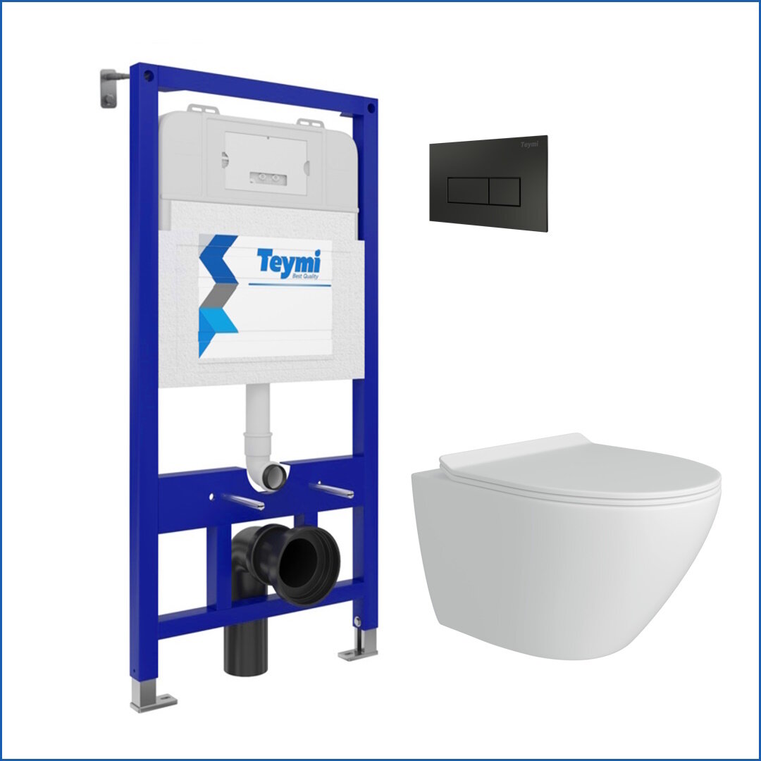 Инсталляция с унитазом комплект 5 в 1 Teymi унитаз подвесной безободковый Lina Pro кнопка черная F00784 24 408 ₽