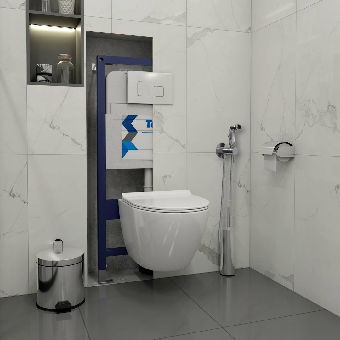 Инсталляция с унитазом комплект 6 в 1 Teymi унитаз подвесной безободковый Lina Pro кнопка белая гигиенический душ хром F08486 24 649 ₽