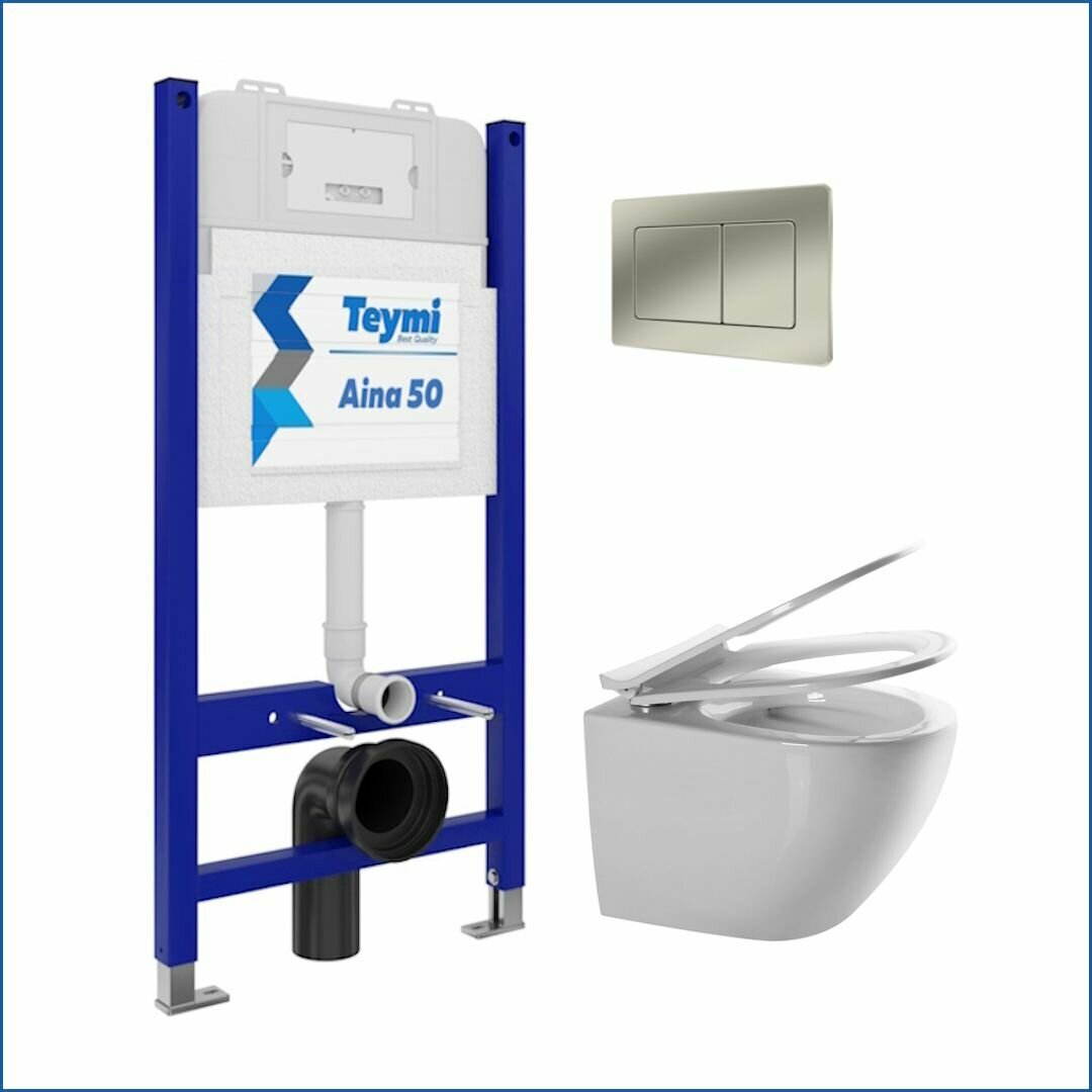 Инсталляция с унитазом комплект 5 в 1 Teymi унитаз подвесной безободковый Lina Media кнопка нержавеющая сталь F13454 информация: